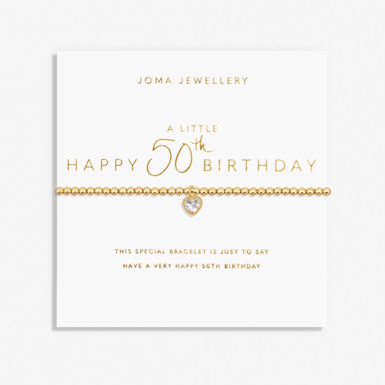 Celebrate the big 5-0 with our Joma "A Little Happy 50th Birthday" Bracelet! This gold-plated bracelet features a beaded design for a comfortable fit and a special cubic zirconia heart charm to spread the birthday love. Perfect for treasured moments with loved ones.
