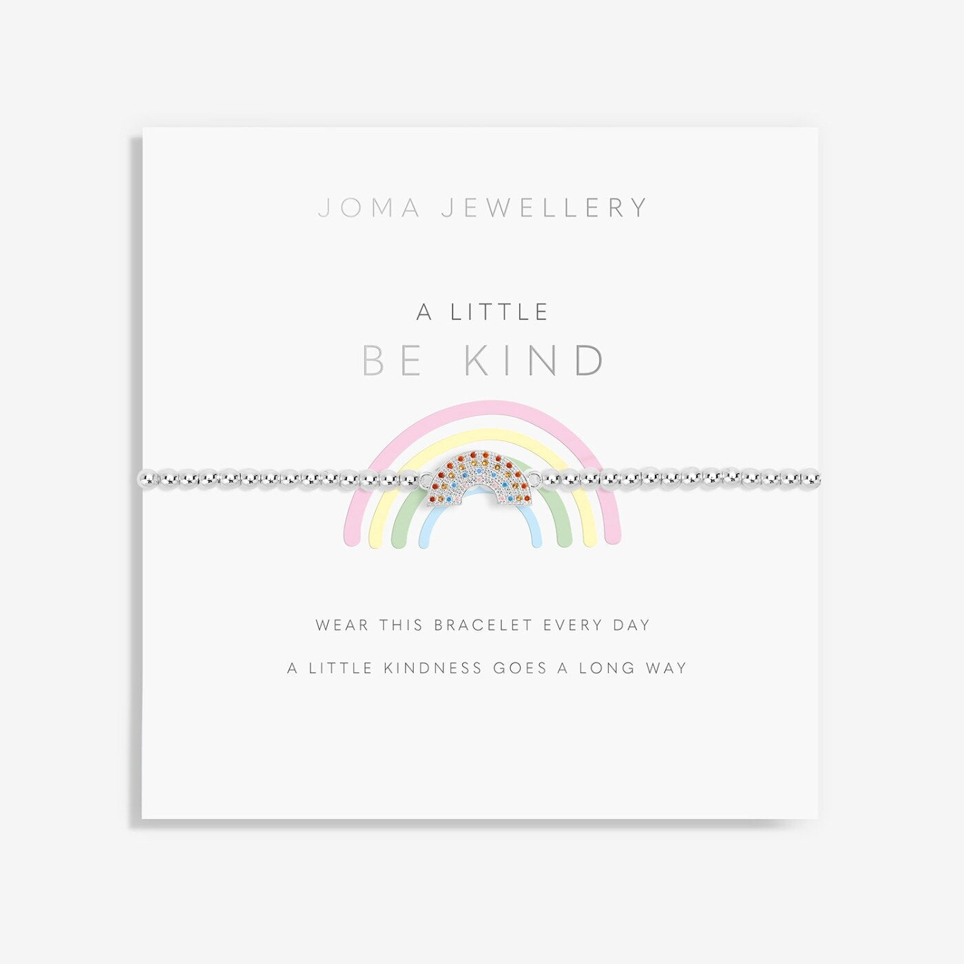 Add a touch of sparkle to your little one's world with the Joma "A Little Be Kind" Bracelet. This charming bracelet is part of the 'A Little' collection, featuring delicate charms and heartfelt sentiments. Its silver-plated stretch bead design will help your child shine with every step.