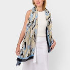Katie Loxton Abstract Zebra Printed Scarf in Ecru, Blue & Black