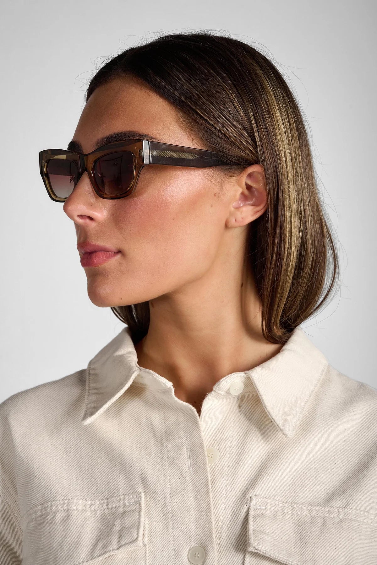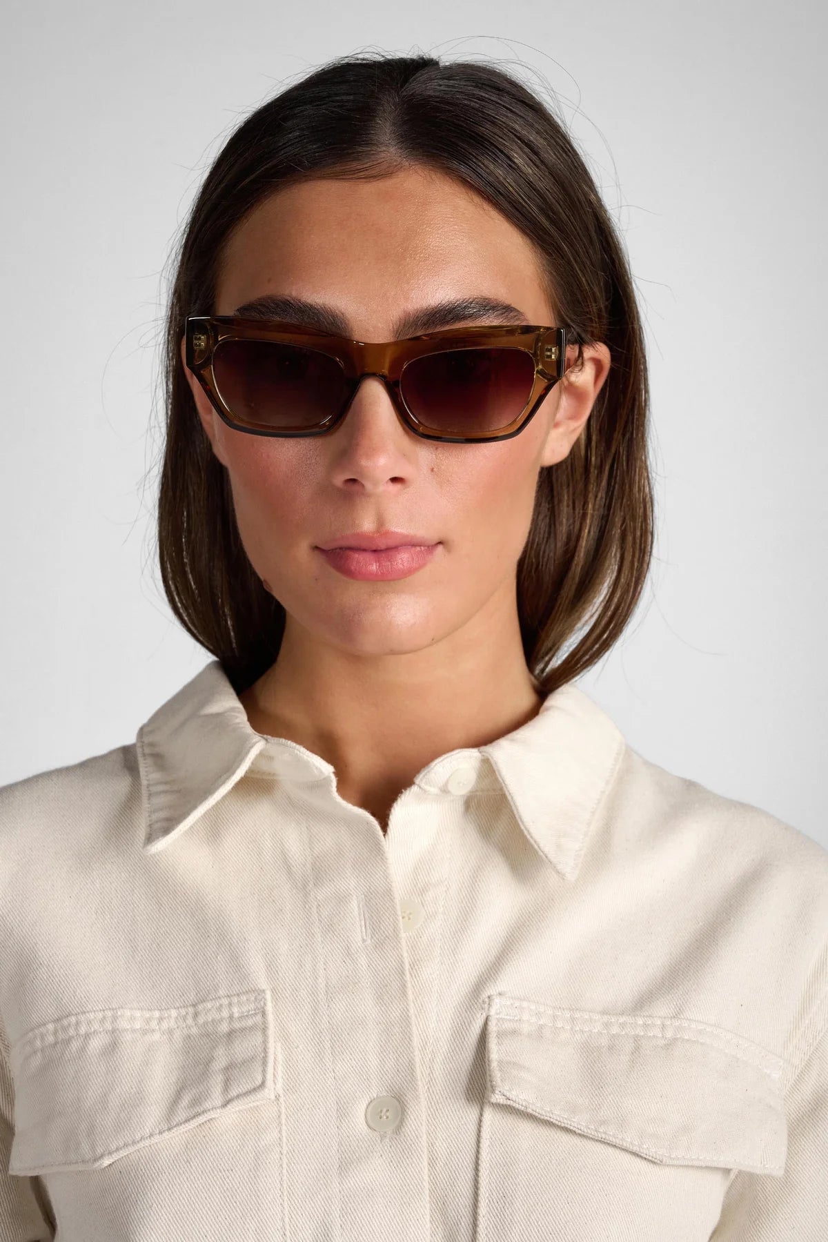Get ready to shine with Tutti & Co.'s Bay Sunglasses! Their sheer gold frames add a touch of glamour to any outfit. Plus, they come in a branded box with a fabric pouch and polishing cloth. Perfect for both style and practicality.