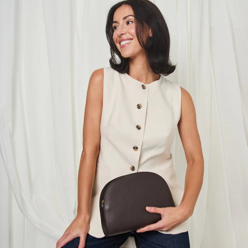 With a playful mix of style and practicality, the Elie Beaumont Moon Bag is perfect for any occasion. Made from premium leather with gold fittings and a structured body, this bag will hold all your essentials without losing its shape. The adjustable strap allows for versatile wear and the inner pockets provide added security.