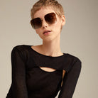 Get ready for the sun and summer with Jonan Sunglasses in Brown & Gold. These oversized metal shades have a sharp design, brown lenses, and thin temples for a cool 70s vibe. Perfect for festivals, holidays, and everyday wear. Comes with a sustainable pouch for cleaning. UVA/UVB protection and CE-certified.