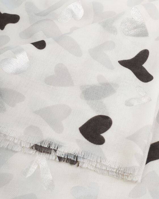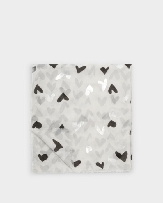Katie Loxton Abstract Heart Printed Foil Scarf in Moonstone & Black