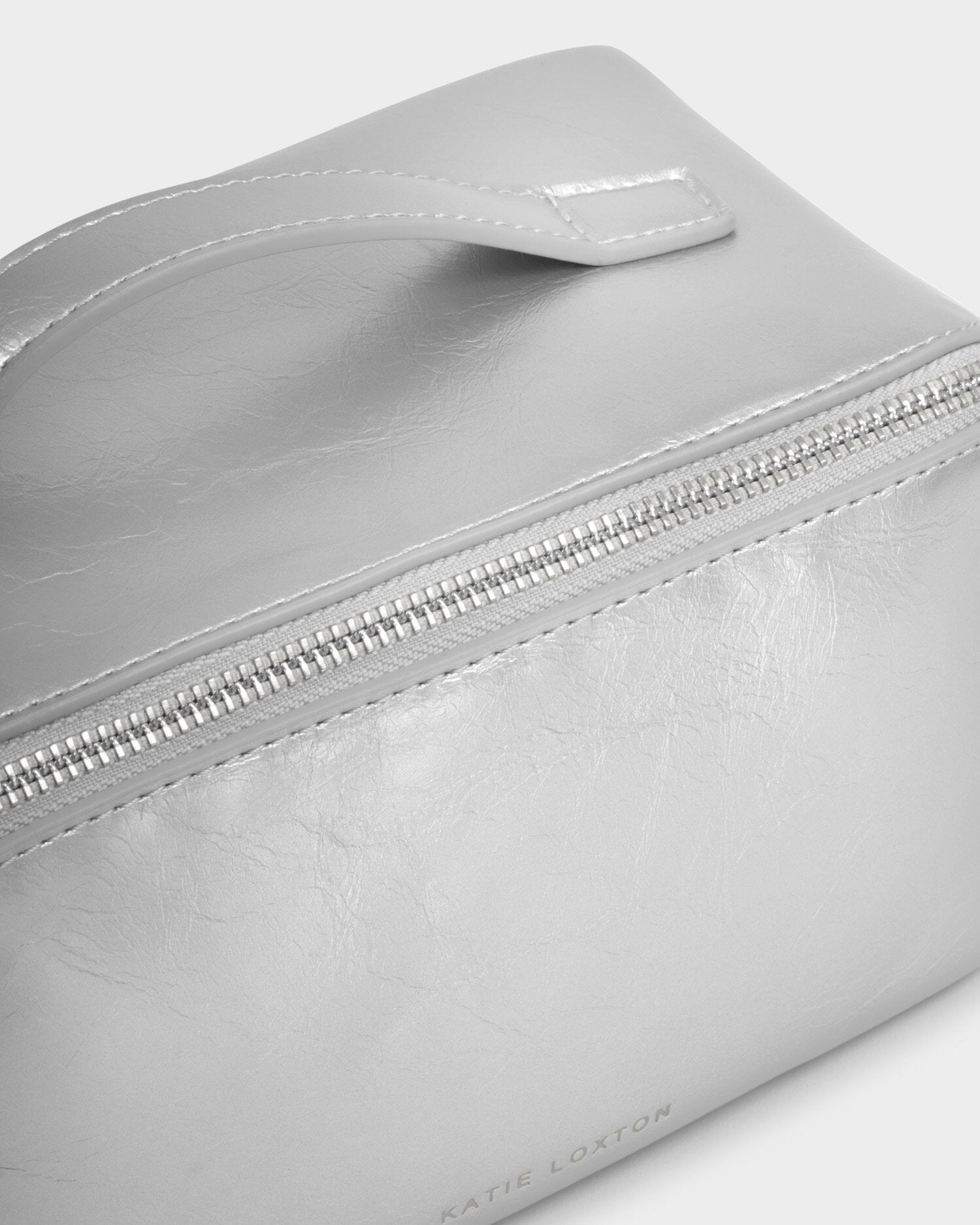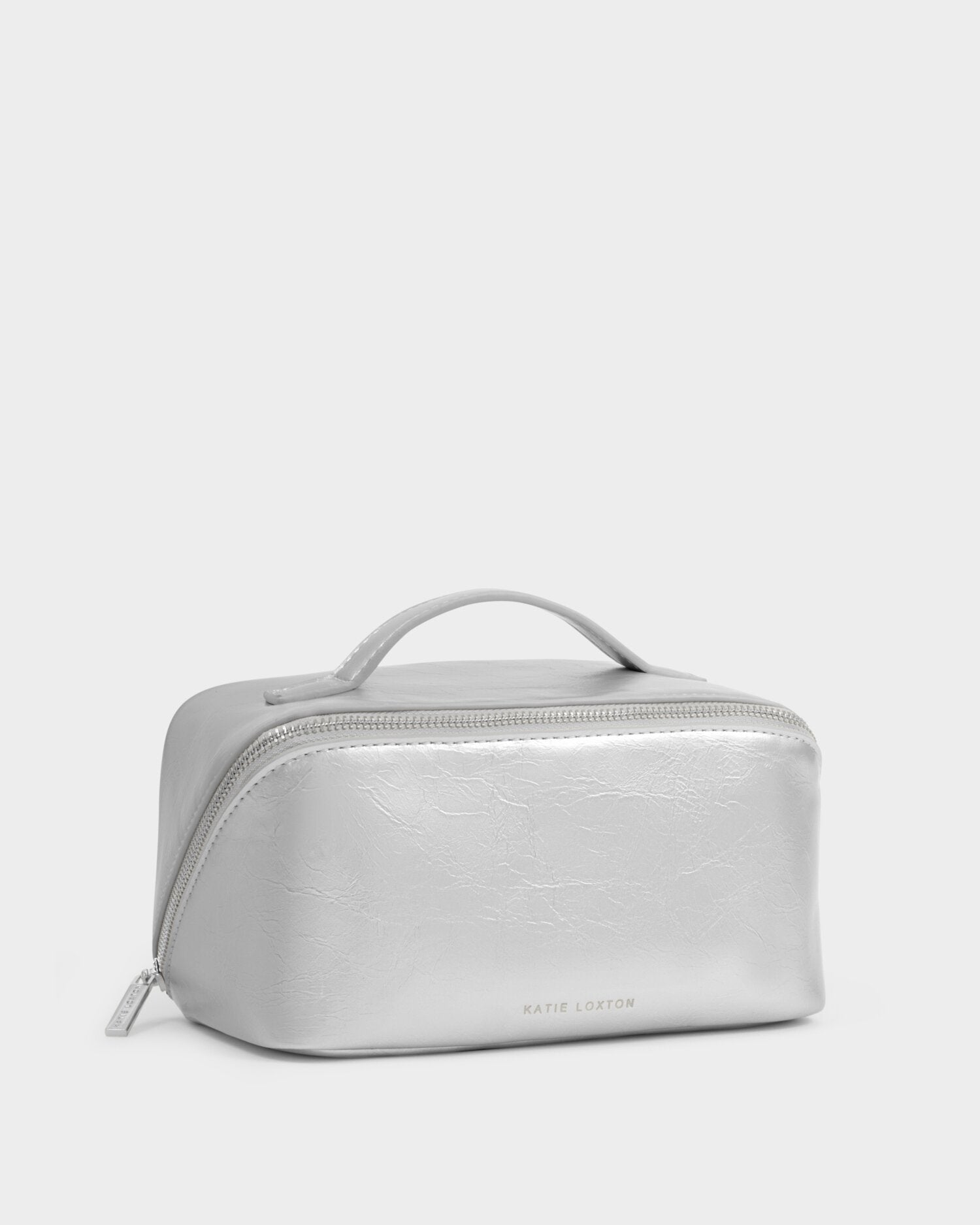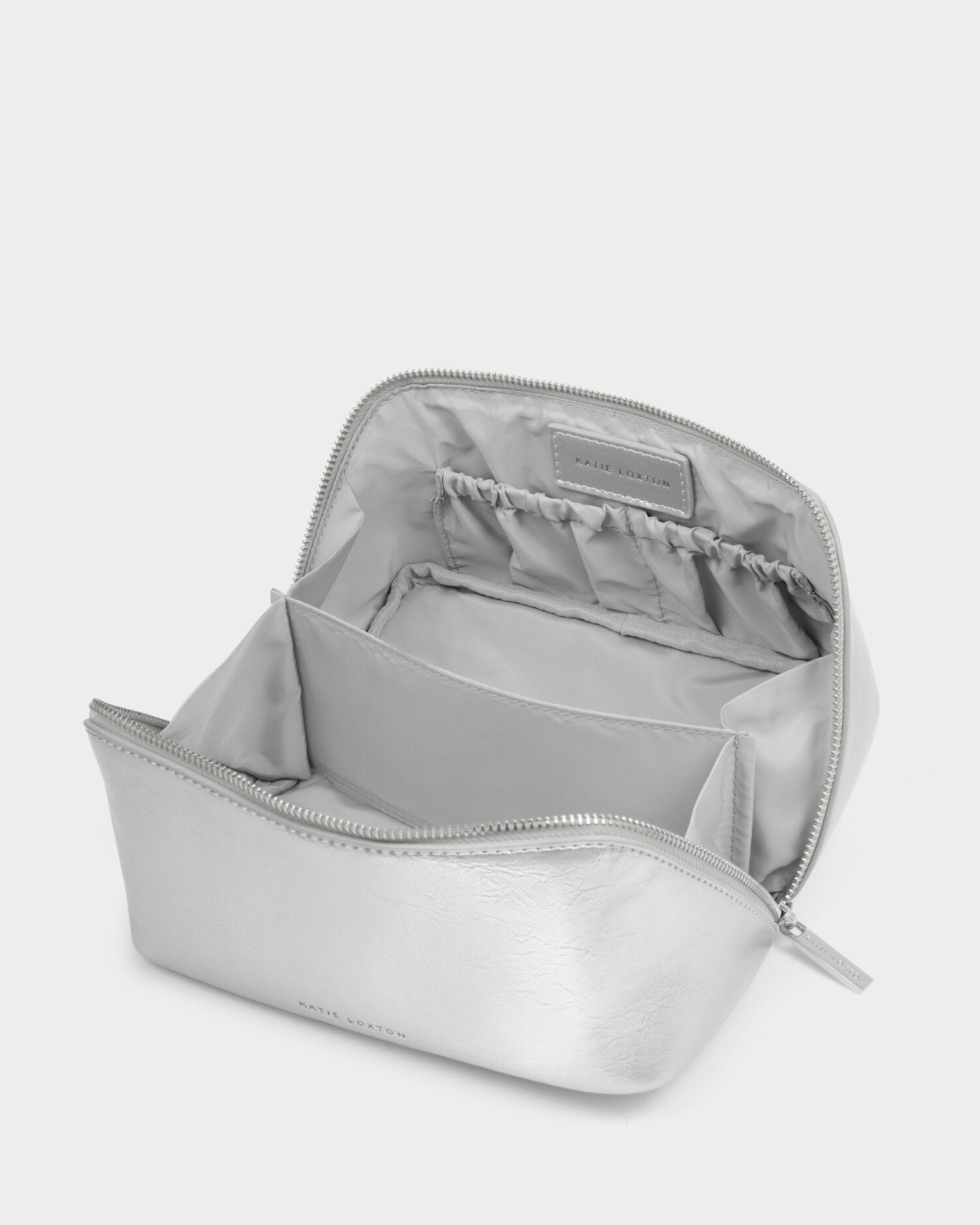 Katie Loxton Medium Fold-Out Wash Bag in Silver Patent