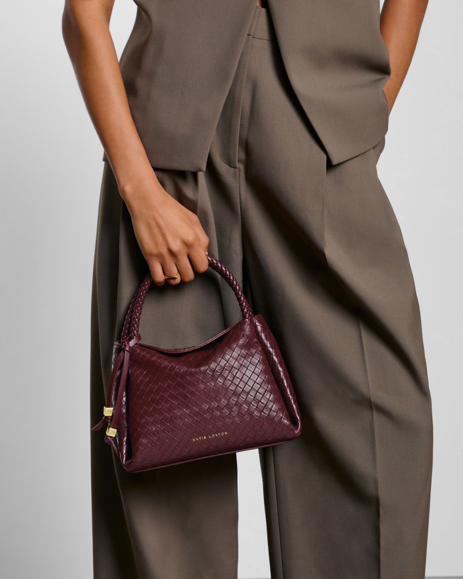 Katie Loxton Nova Woven Texture Top Handle Bag in Cherry