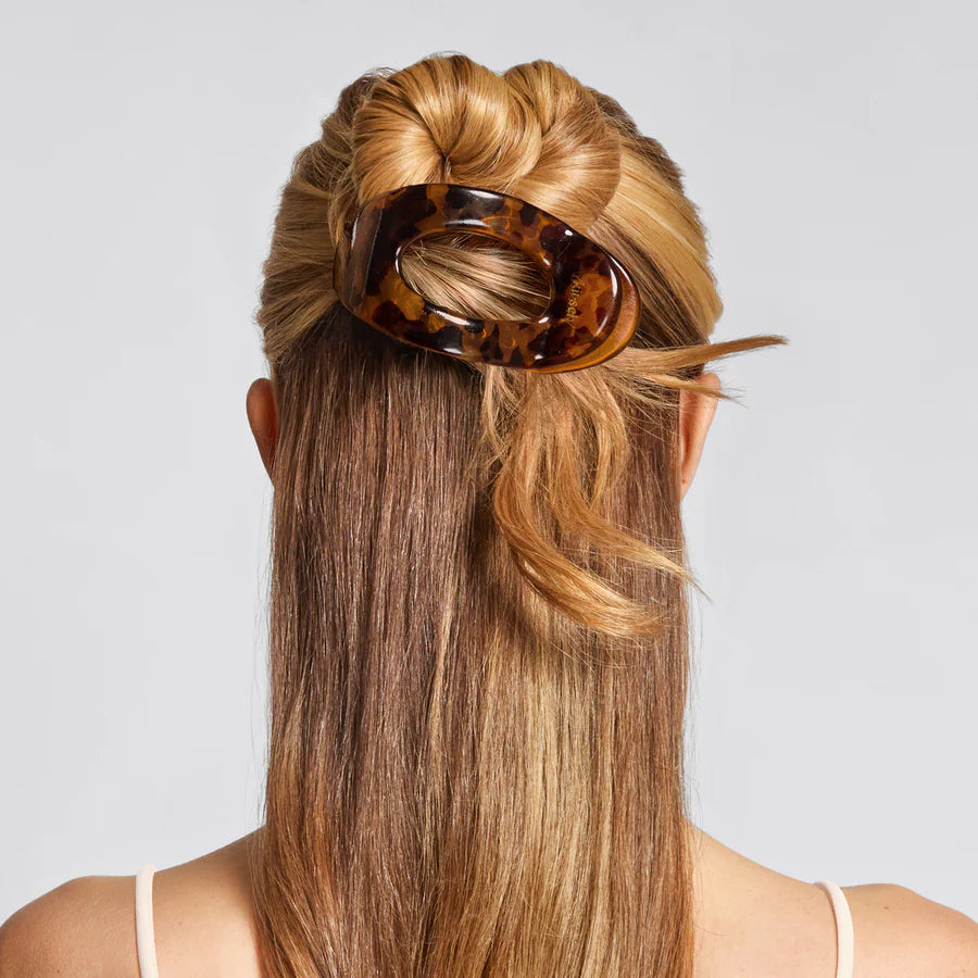 This large, flat clip made from recycled plastic in charming tortoiseshell offers fuss-free style that stays comfy at the back of your head—ideal for driving, lounging, or yoga sessions. Its generous size easily tames strands for half-up or full updos, letting you rock a simple look or stack two clips for playful, versatile hair magic.