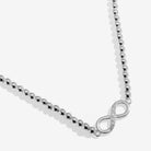 Infinity meets attitude with this stunning Reva necklace. Adorned with a sparkling pavé infinity charm, it pairs beautifully with contemporary beaded detailing and a sleek silver-plated chain. The adjustable chain extender ensures the perfect fit every time, while the secure lobster clasp keeps your style locked in place. Stack it, layer it, or let it shine solo—this bold statement piece is ready to transform your jewellery game.