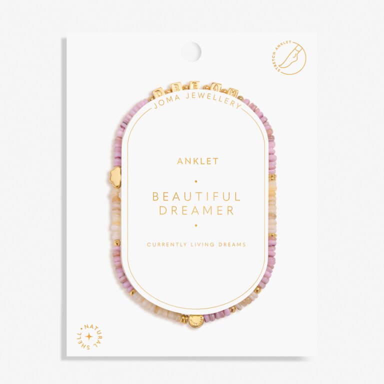 Dream of happiness every time you wear our Joma Jewellery Beautiful Dreamer Anklet. With real natural shell and gold-plated accents, this anklet from our Happy Little Moments Collection will bring joy to your every step. Add a touch of playfulness and elegance to your look today!