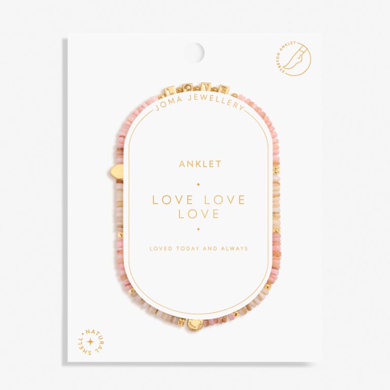 Add a touch of love to your anklet game with our Joma Jewellery Love Love Love Anklet. Made with real natural shell and gold-plated, it's the perfect addition to your "Happy Little Moments" collection. Spread love and good vibes with this playful and quirky accessory.