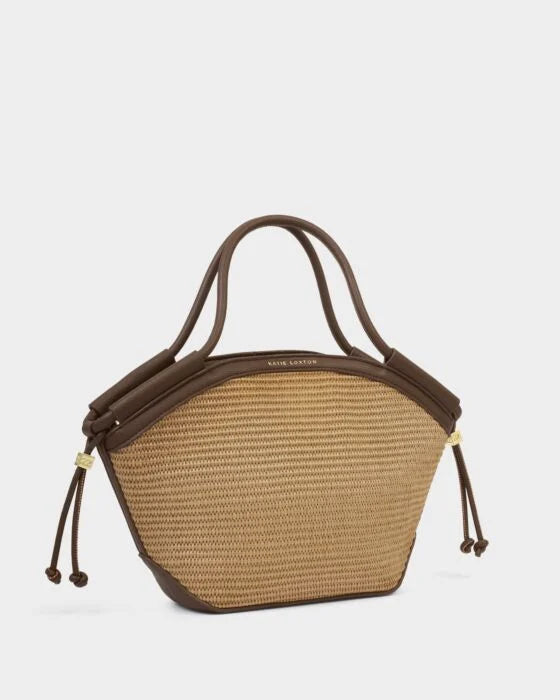 Katie Loxton Florence Mini Tote Bag in Natural Raffia & Bitter Chocolate