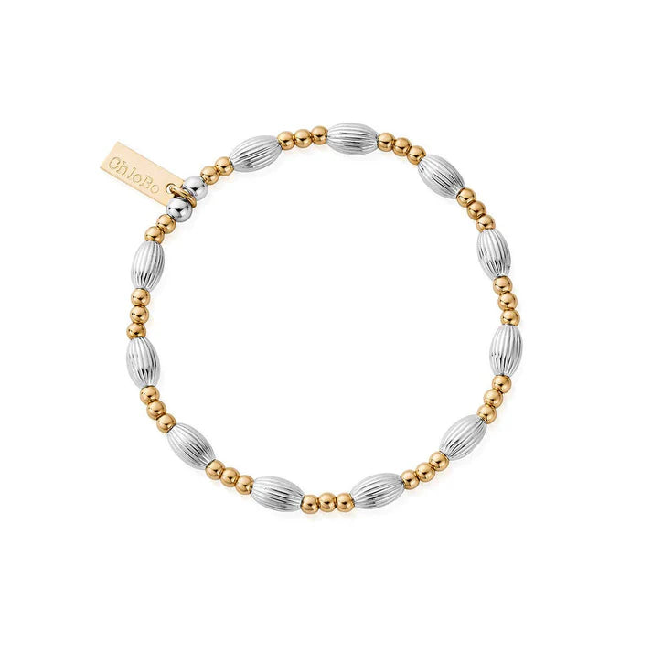 Add some sparkle to your clean-cut style with the ChloBo Mixed Metal Corrugated Oval Bracelet. Handcrafted with 925 Sterling Silver and Gold beads, this contemporary piece is perfect for the trendy and stylish individual. The corrugated beads not only add texture but also catch the light for an eye-catching effect. Wear it alone or stack with other ChloBo favourites.