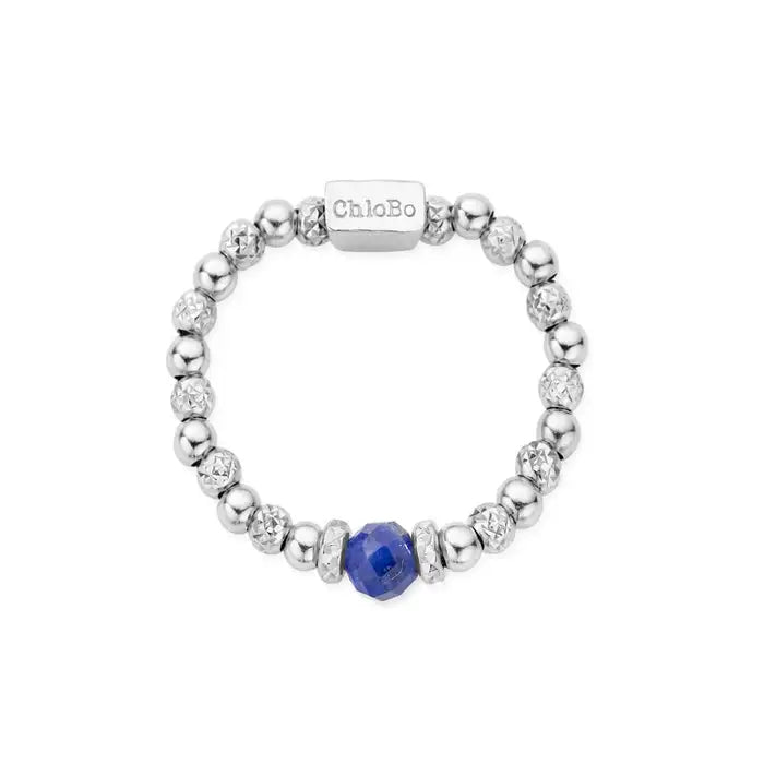 Add a touch of sparkle and color to your ring stack with this beautiful ChloBo ring. Crafted with a bold sodalite stone and delicate sparkle beads, this 925 Sterling Silver piece will channel clarity, alignment and intuition to help guide you through life.