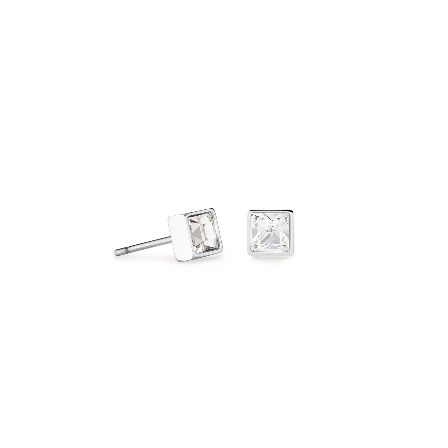 Cœur De Lion Crystal Brilliant Square Stud Earrings in Silver