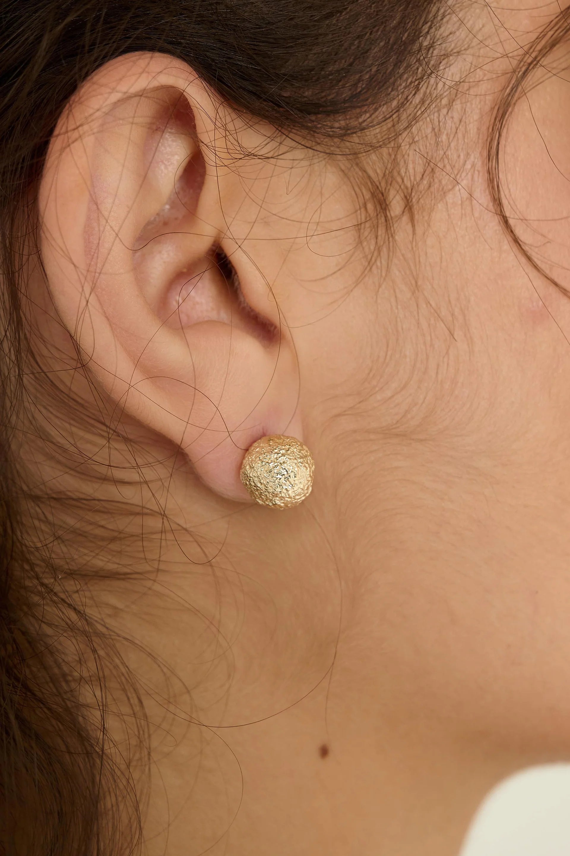 These delightful sphere studs bring a touch of tactile fun to your everyday look. Featuring a beautifully textured finish, they're designed with round backs for ultimate comfort and versatility—flip them either way depending on your mood. At just 0.5cm, they're the perfect petite statement without the fuss. The 1cm push backs ensure a secure, all-day fit. Simple, stylish, and endlessly wearable.