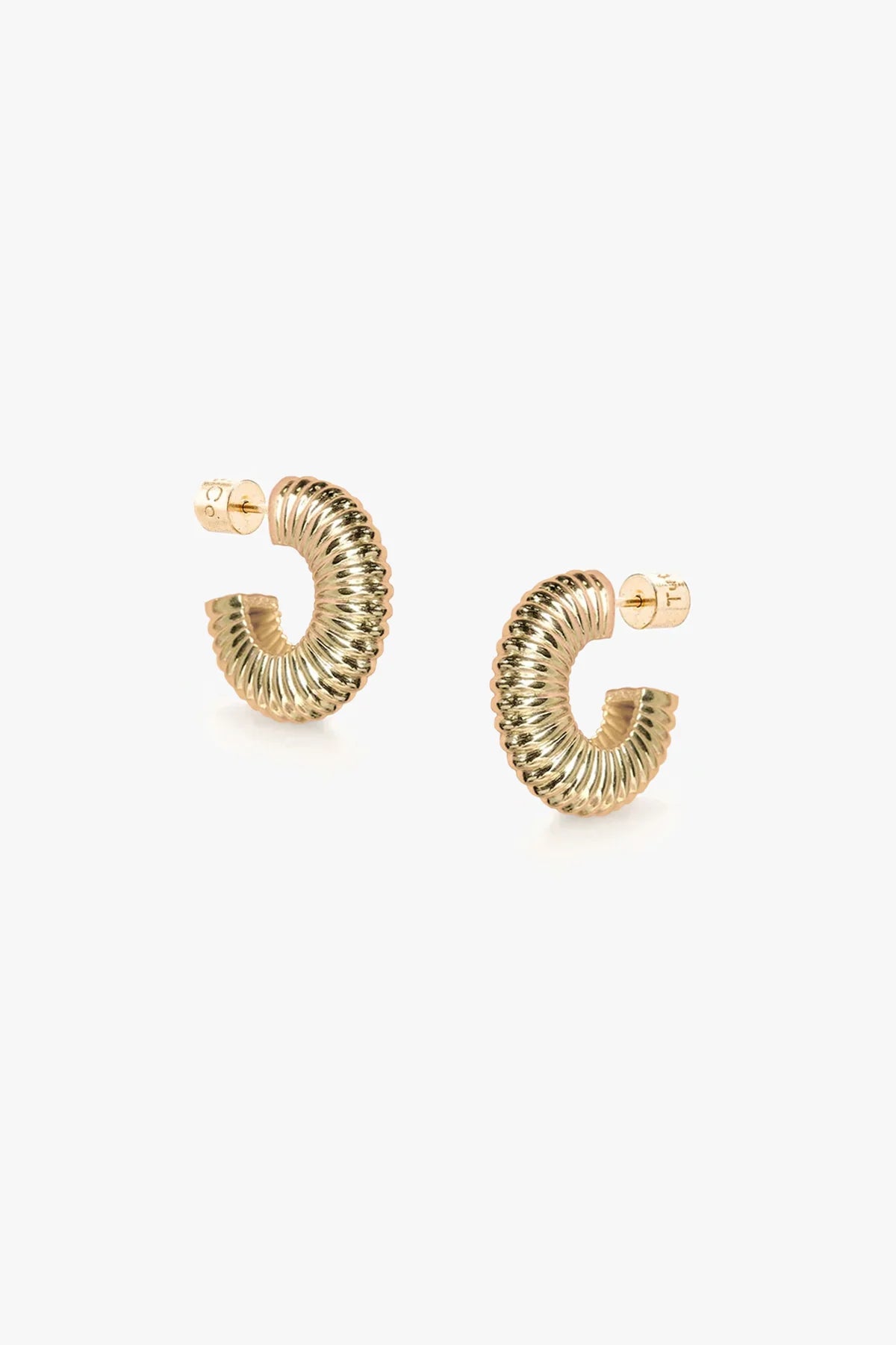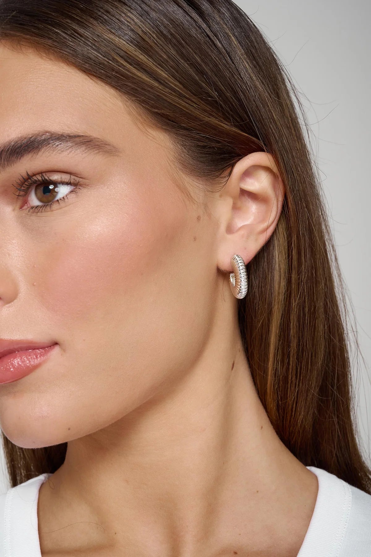 Step into the sunshine with Tutti & Co.'s Sunlit Earrings! These ribbed midi hoops are handcrafted from recycled materials and plated with sterling silver or gold. Plus, they come with an anti-tarnish, water resistant coating. Complete the look with other pieces from the Sunlit Collection. Shine on!