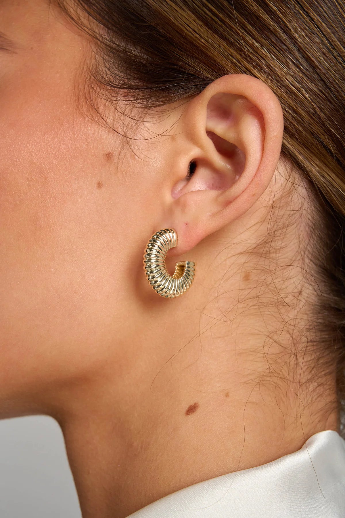 Step into the sunshine with Tutti & Co.'s Sunlit Earrings! These ribbed midi hoops are handcrafted from recycled materials and plated with sterling silver or gold. Plus, they come with an anti-tarnish, water resistant coating. Complete the look with other pieces from the Sunlit Collection. Shine on!