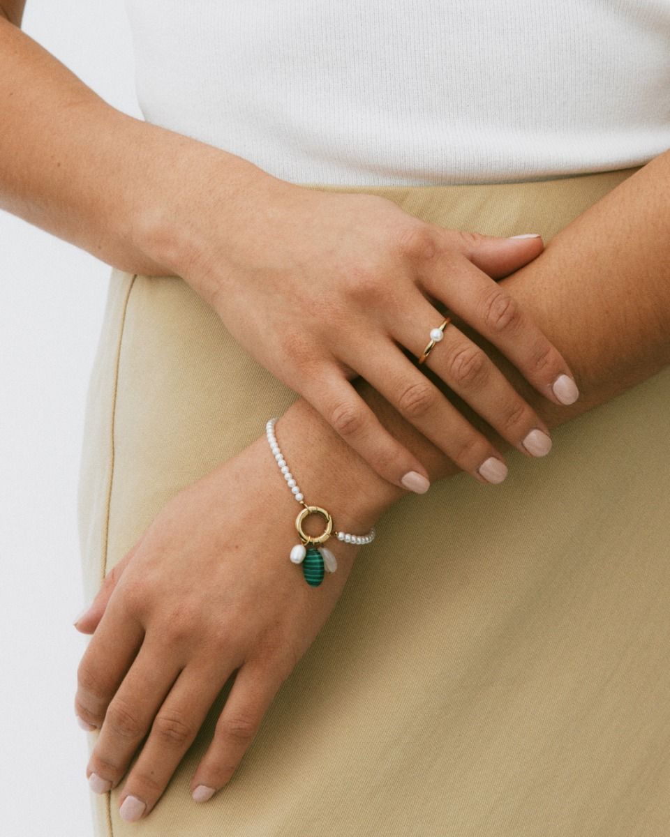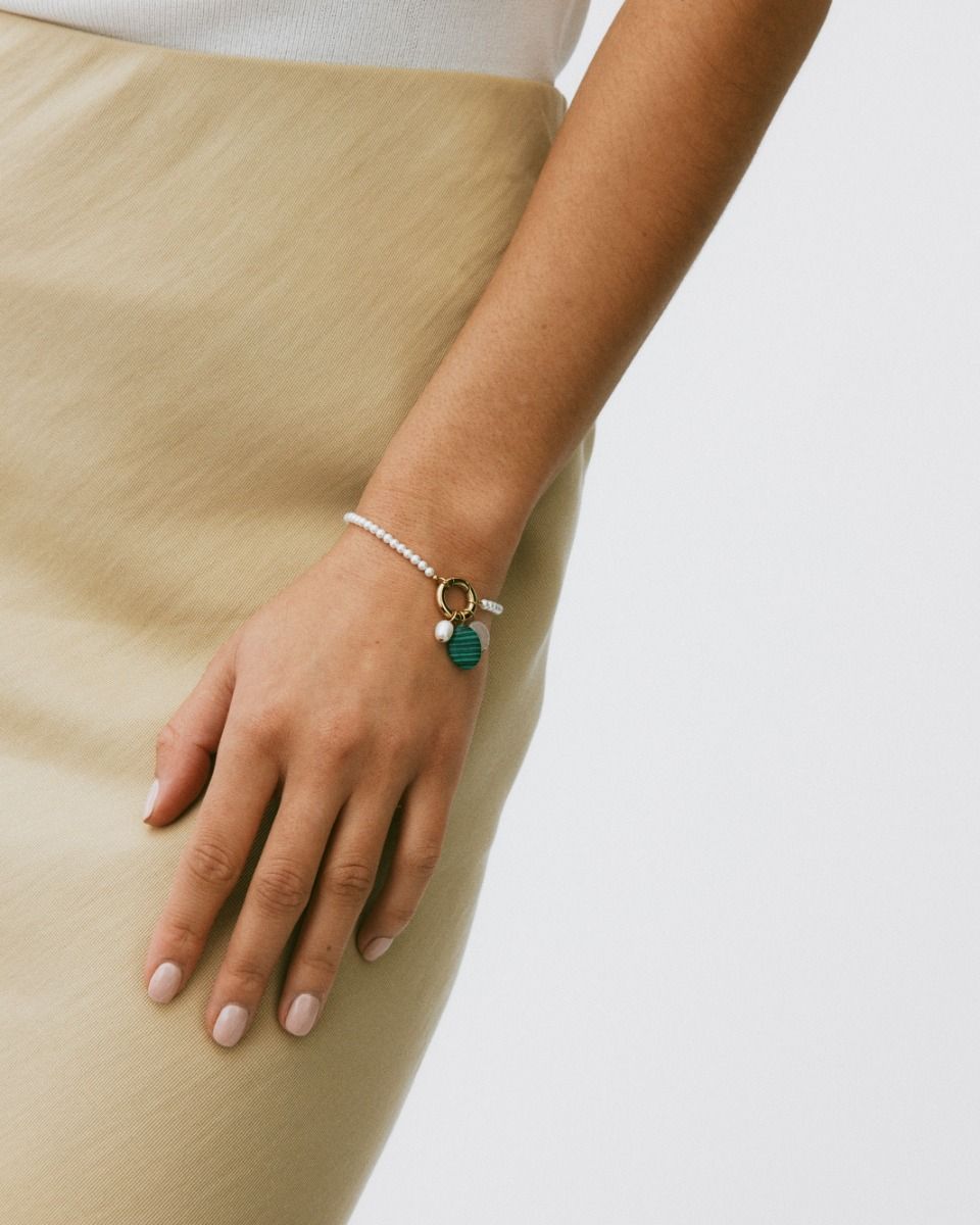 Introducing Edblad's Beach Crystal Bracelet - a versatile and luxurious addition to your holiday wardrobe. Adorned with freshwater pearls and pendants in rose quartz and green malachite, it exudes bohemian charm. Complete the look with matching earrings and necklaces. You'll be the epitome of elegant vacation style!