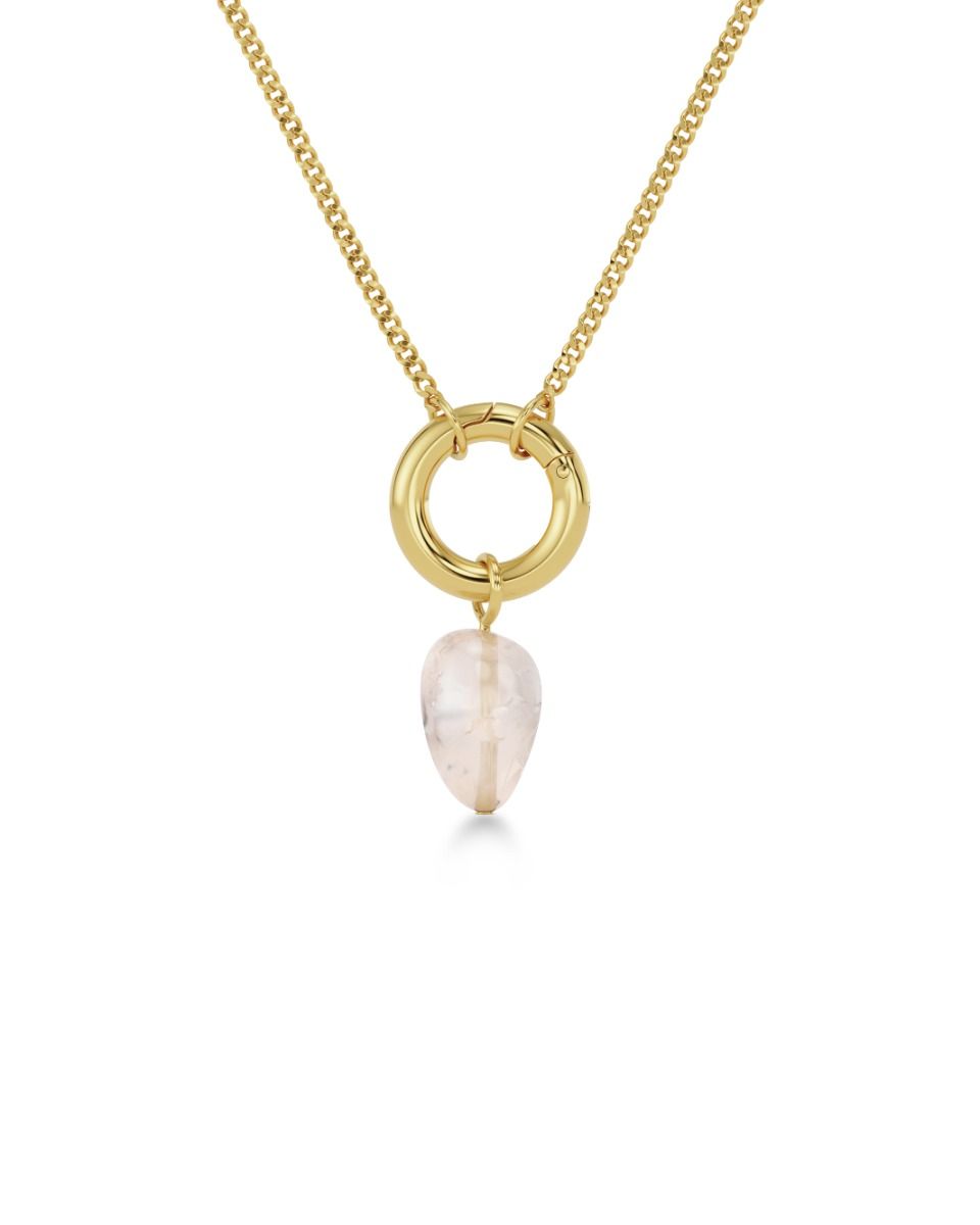 - Rose quartz, shiny 14K gold plating on stainless steel