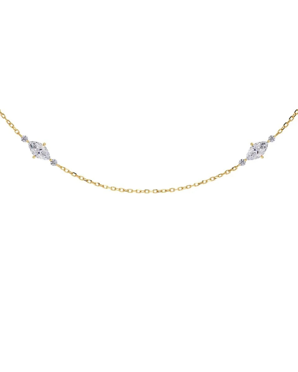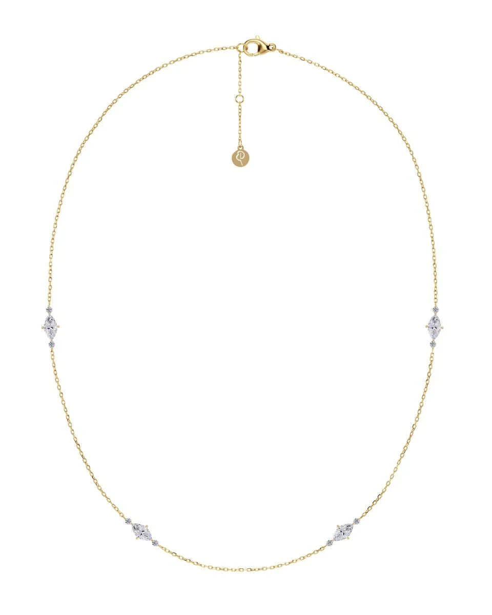 Experience understated elegance with the Edblad Trinny Necklace in Gold. This romantic piece adds a touch of sparkle and charm to any outfit. Perfect for weddings or any special occasion, the delicate clusters of stones on the faceted anchor chain create a dewdrop effect. 14K gold plating adds a luxurious touch.