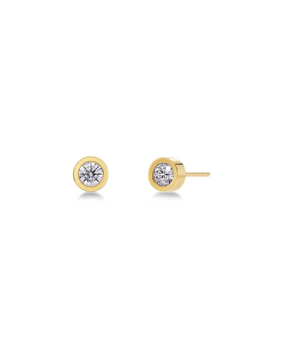 - Cubic zirconia, shiny 14K gold plated stainless steel