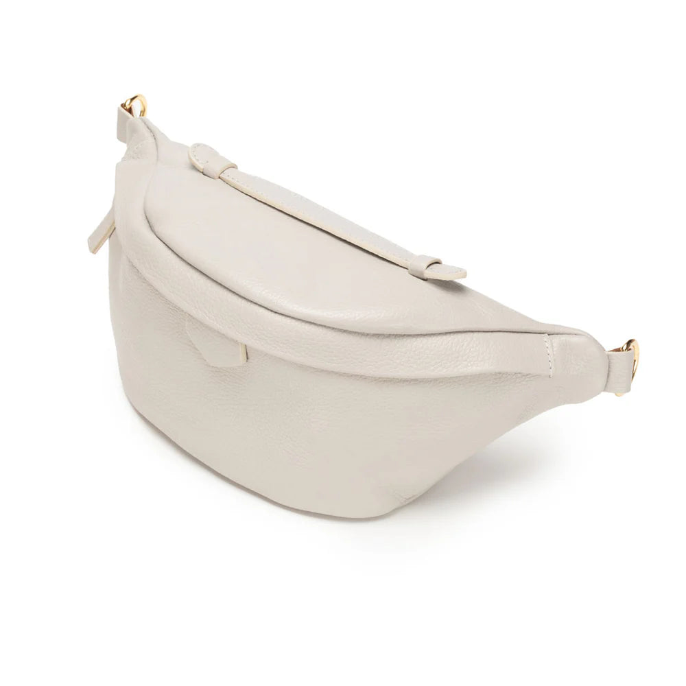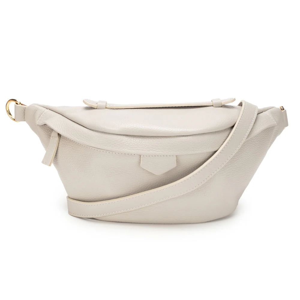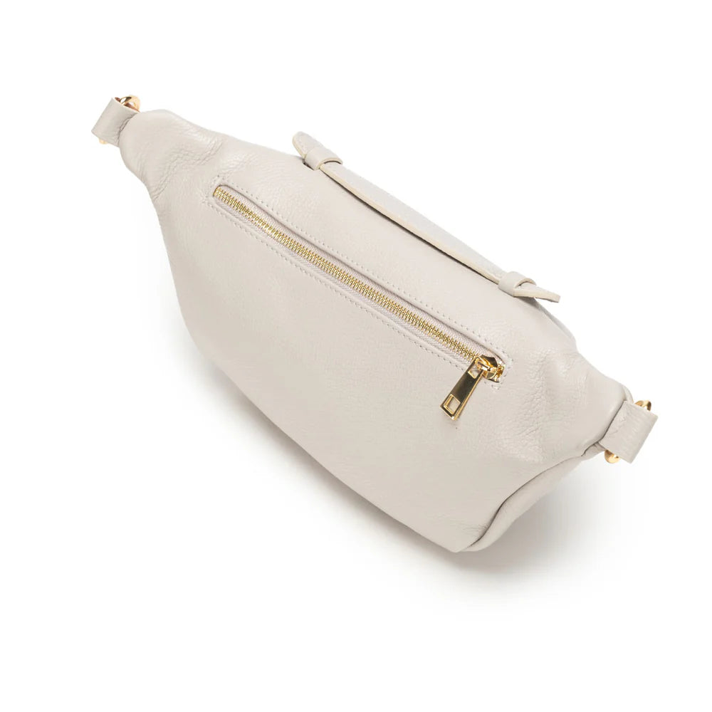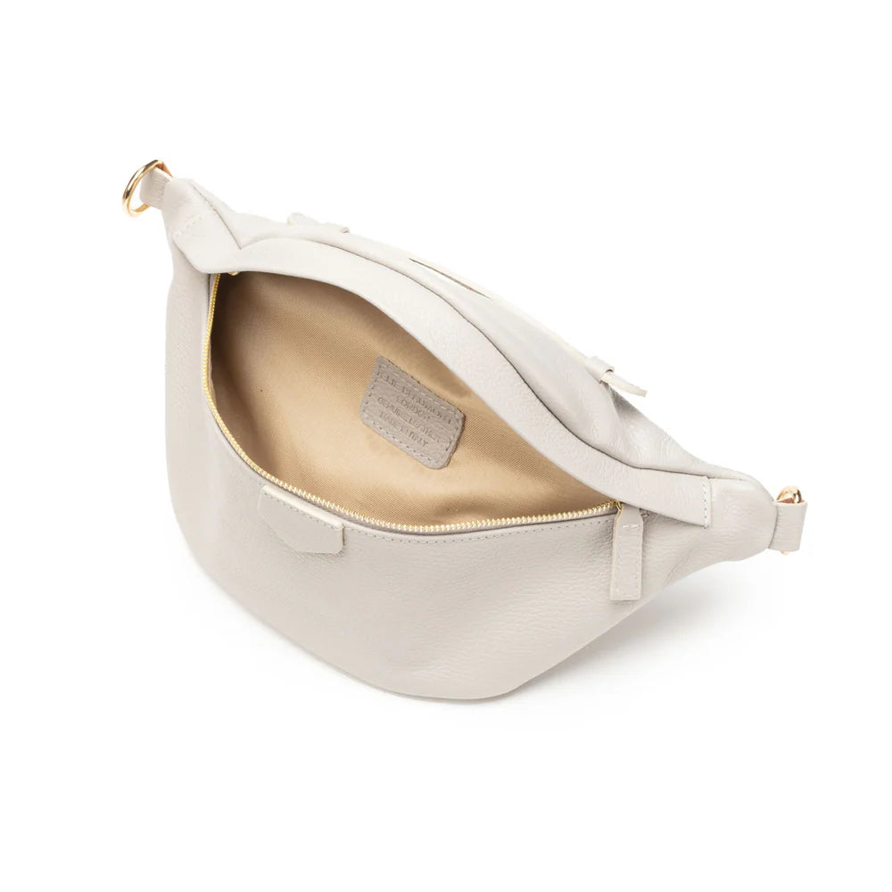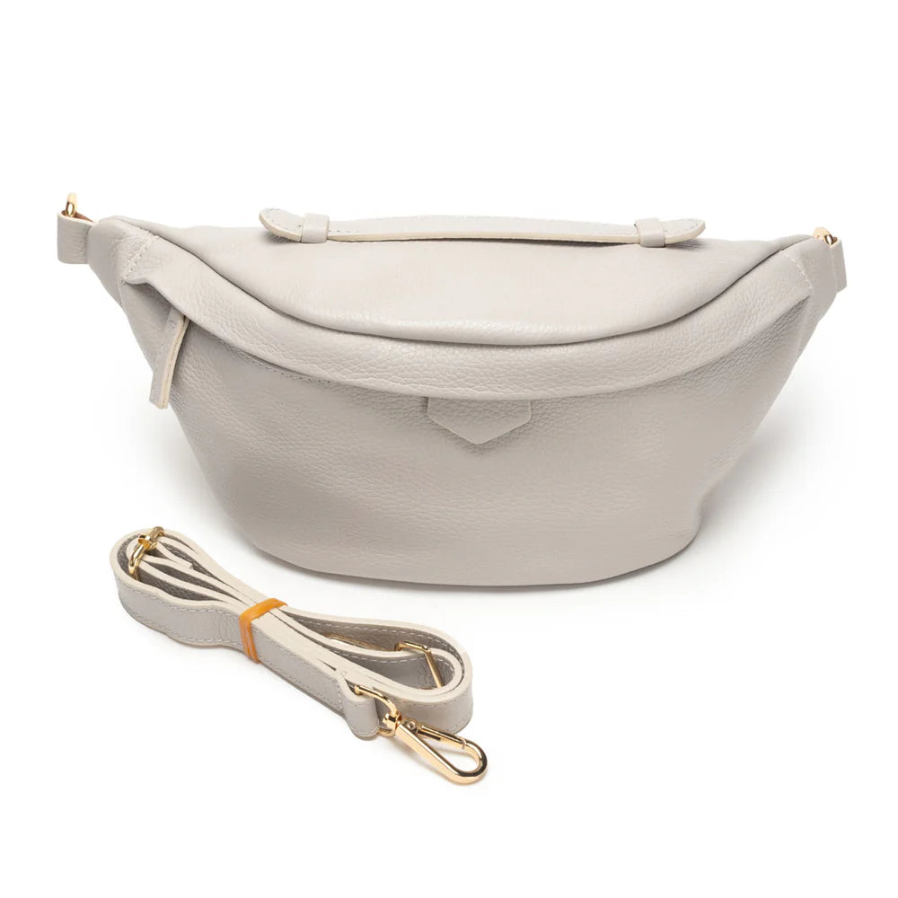 Introducing the Elie Beaumont Arc Sling Bag in Light Grey - a versatile and stylish bag designed for life on the go. Made with luxurious Italian leather, this compact bag can be worn cross body or as a traditional Bum bag - Fanny Pack. Stay organized with a full-length external pocket and interior pocket for your essentials. Perfect for all the ways you move through your day!