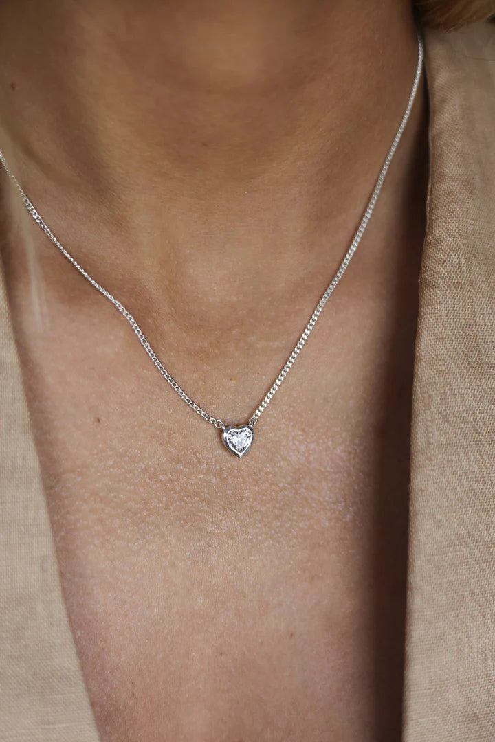 Love is in the air when you wear this sparkly Cupid Necklace! The eye-catching silver heart pendant is adorned with a Cubic Zirconia stone, making it perfect for making a statement on your date night!