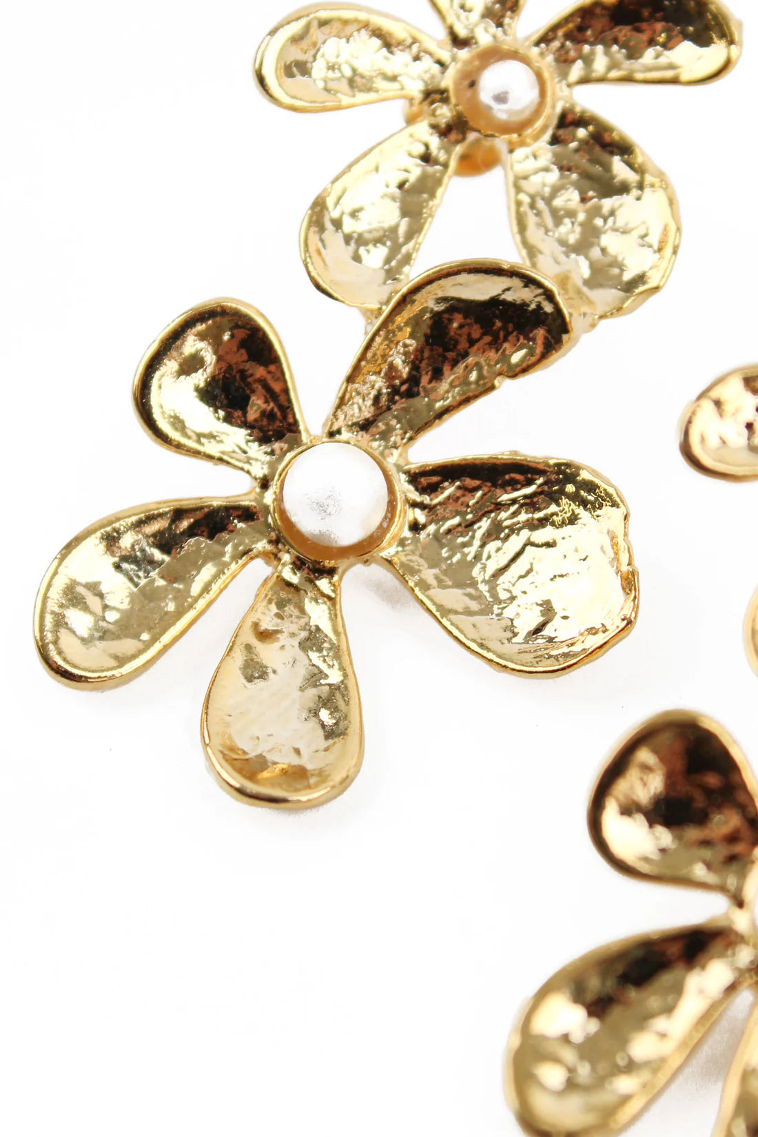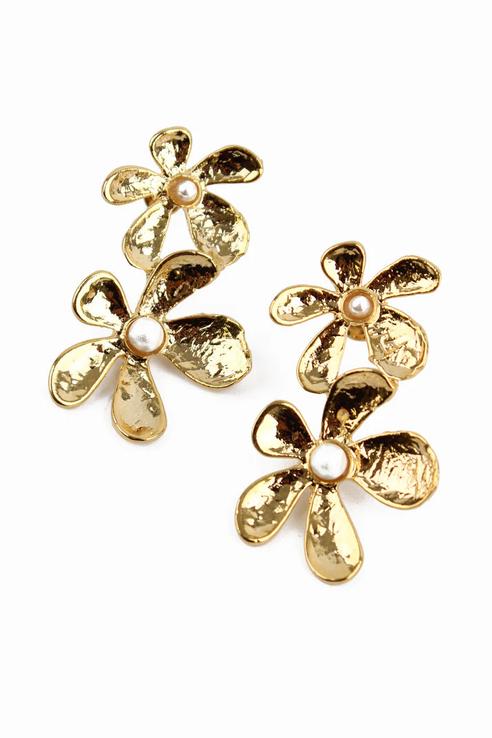 My Doris Double Flower Pearl Drop Statement Earrings in Gold