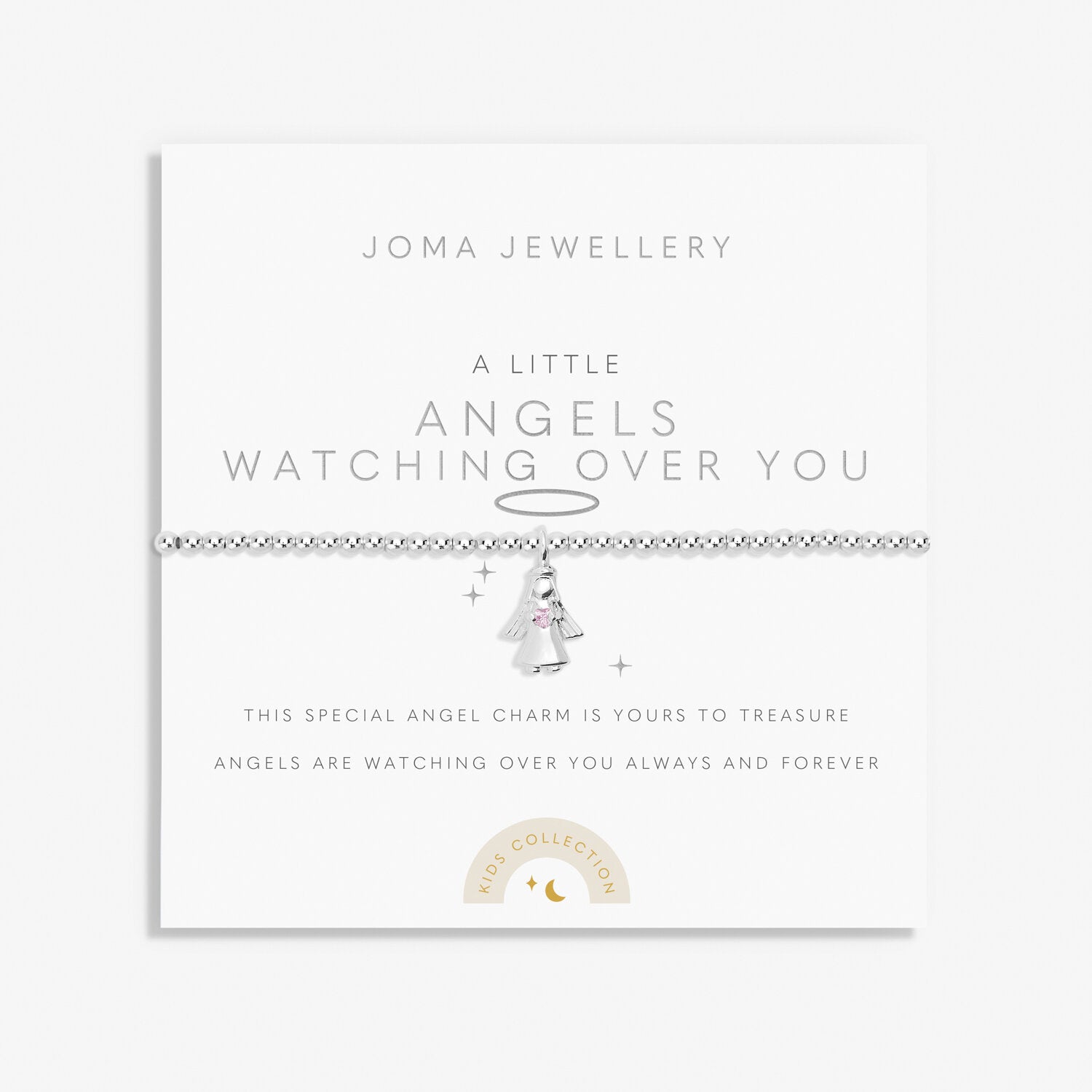 Let this special angel charm be a reminder that angels are always watching over you. Celebrate life's moments with our Kids' A Little collection. The beaded design is perfect for small wrists and the silver plating adds a touch of sweetness. Comes with a sentiment-stamped card and adorable doodles. (Move over, guardian angel, we've got this covered!)