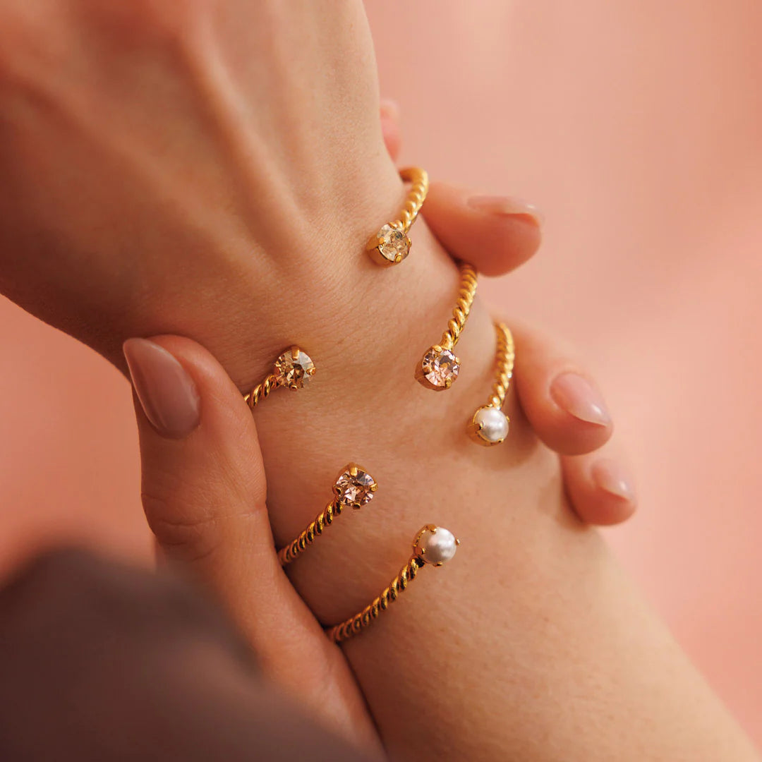 Introducing the Mini Twisted Bracelet by Caroline Svedbom! This delicate and elegant bracelet features a thin twisted design with sparkling crystals on each side, adding a touch of charm to any outfit. Available in 3 beautiful colors, it's perfect for stacking and a must-have in your bracelet collection.