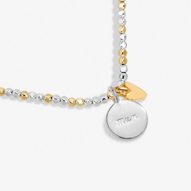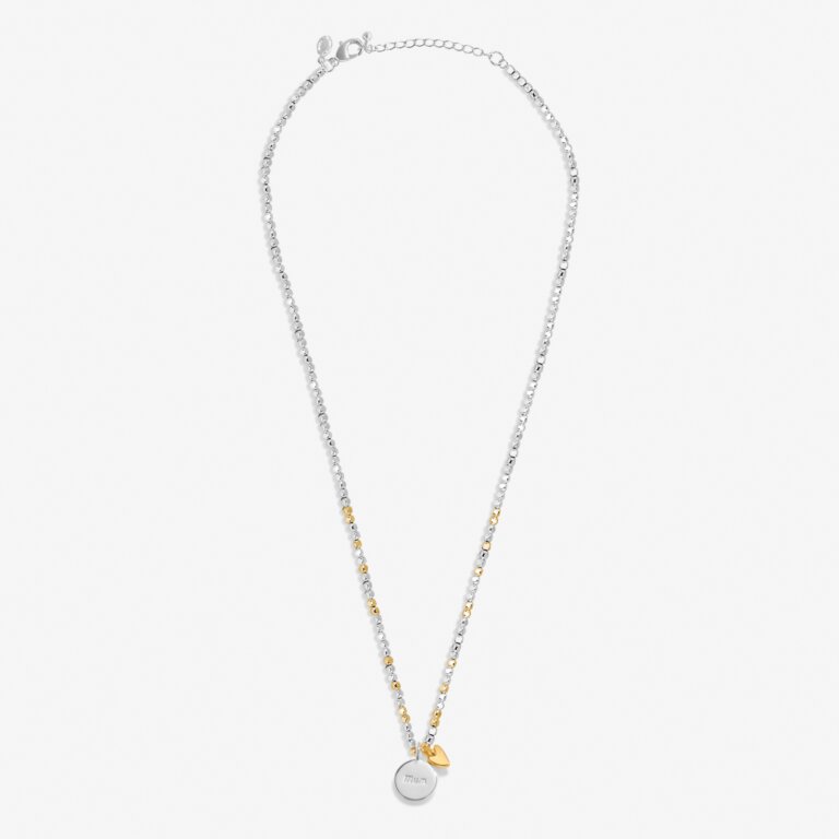 Show Mum how much she means to you with the Joma Jewellery 'Mum' Boxed Necklace from the So Loved Collection. Remind her she's lucky to have a Mum like you with the engraved charm and silver/gold beads. Delight her with this perfect Mother's Day gift in a blush pink box with a heartfelt poem.
