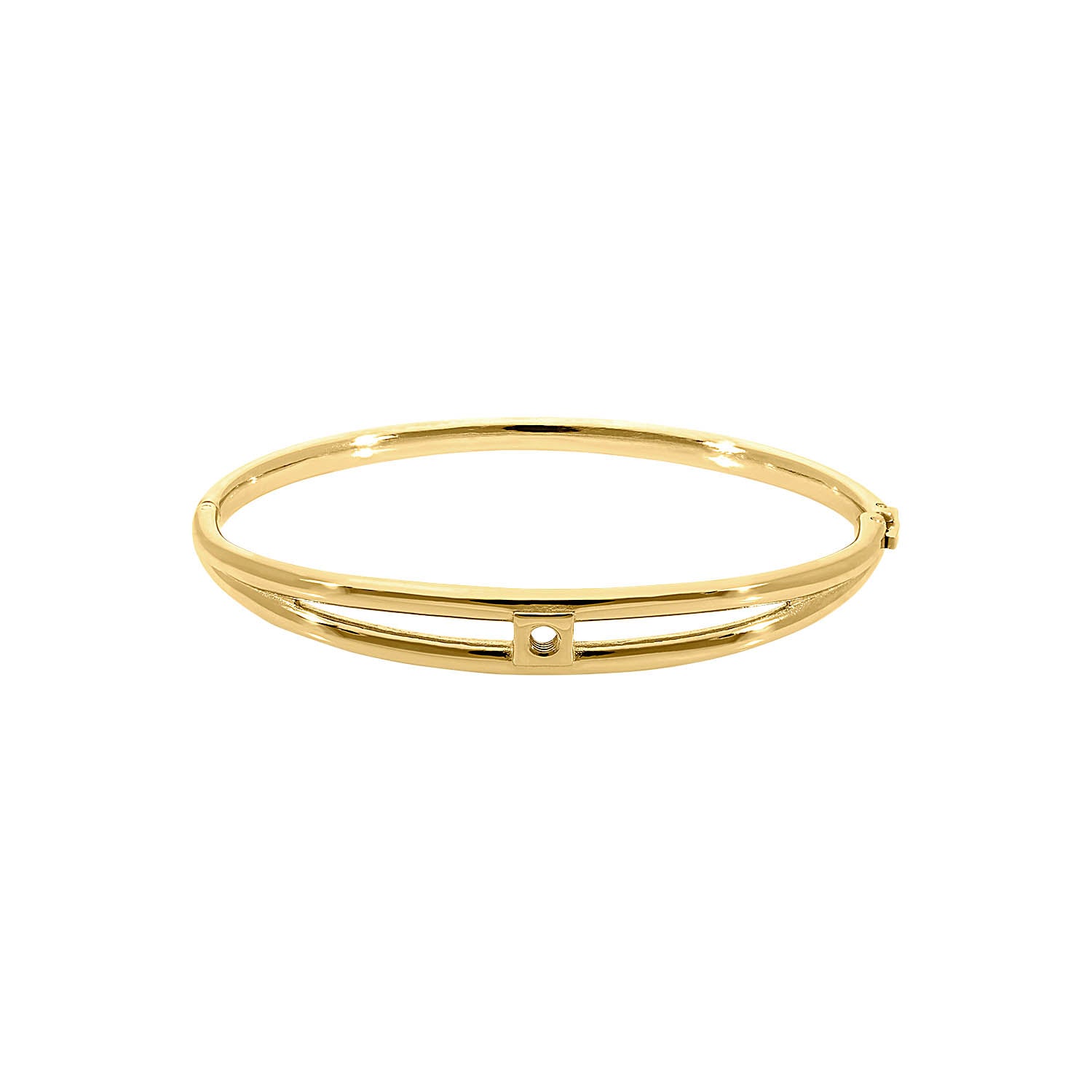 Introducing the Qudo Roma Bangle in Gold - it's like our new best friend! This solid hinged bangle is not only stunning, but also allows you to mix and match toppers on the front. Made from durable stainless steel with yellow gold plating, and measuring at 19cm, it's the perfect piece for any season.