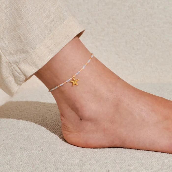 Joma Jewellery Starfish Multi Beaded Anklet in Gold