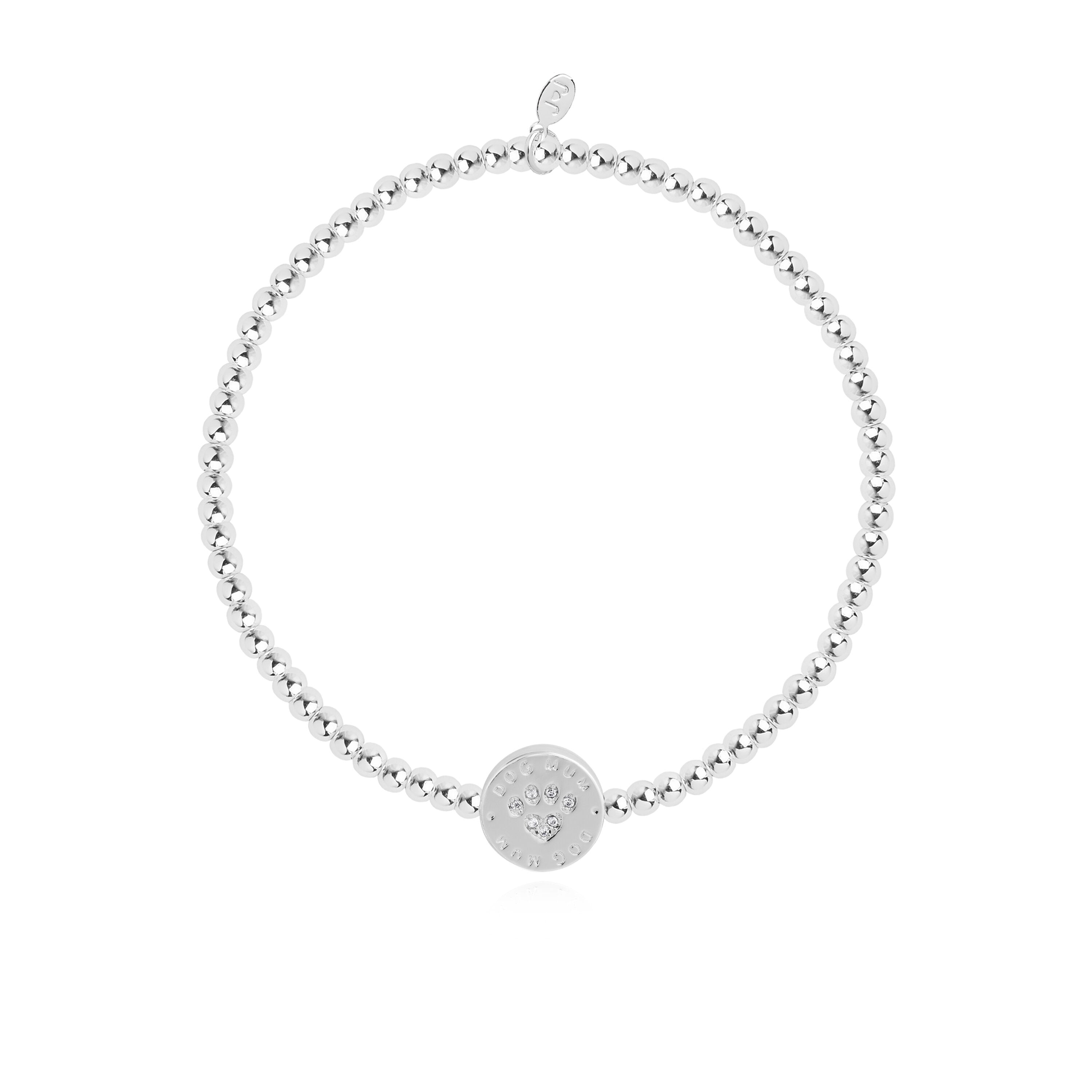Celebrate your fur-mazing bond with your furry companion with the Joma "A Little Dog Mum" Bracelet. This silver plated stretch design bracelet features a sweet disc charm with a sparkling paw print, perfect for any dog mum. Expand your A Littles family and show off your love for your pup in the most stylish way.