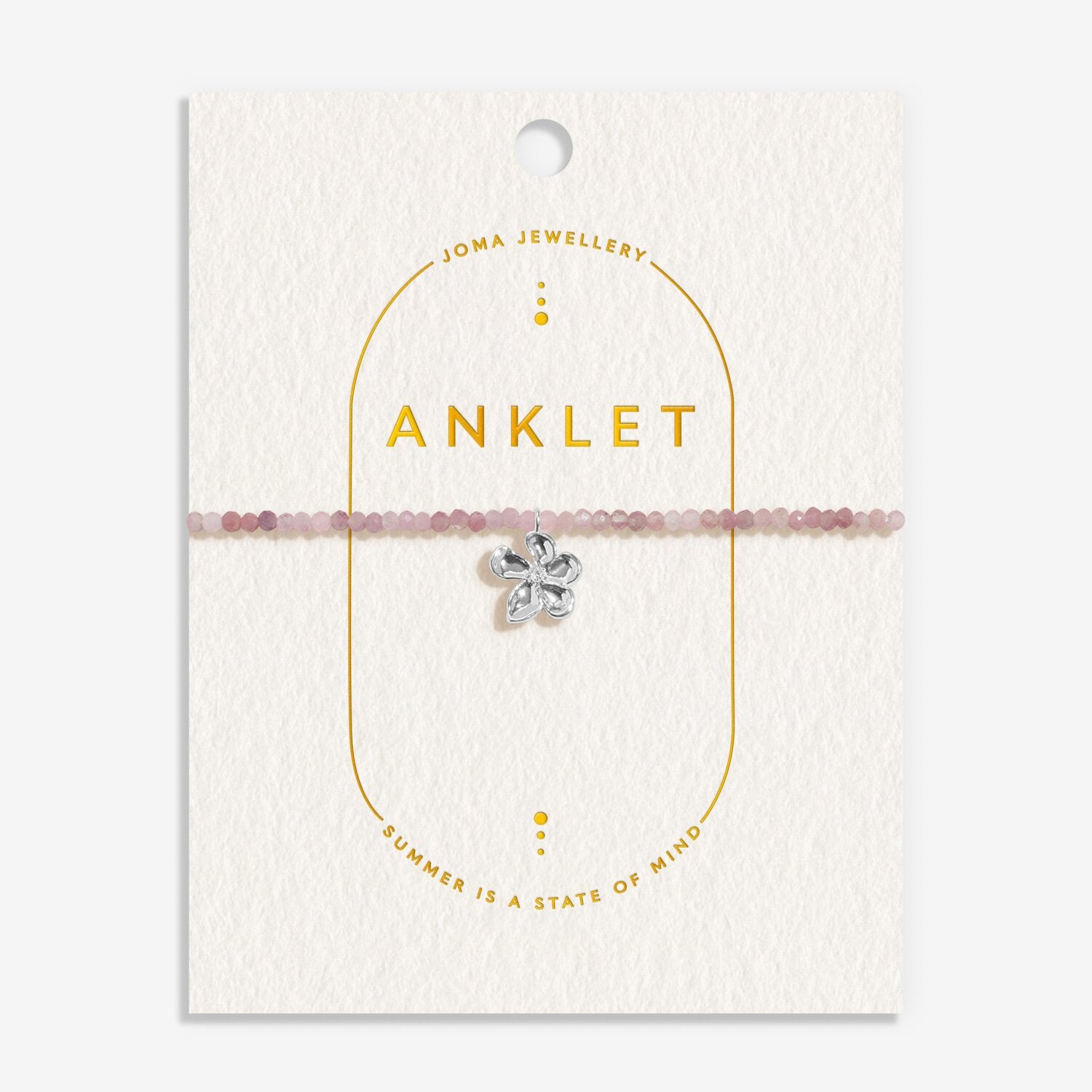 Dive into summer vibes with this delightful Joma Jewellery anklet! Crafted from a brass base and finished in gleaming silver plating, this stretchy 23cm beauty slides effortlessly onto your ankle. Perfect for beach days, festival season, or adding a touch of coastal charm to your everyday look. Arrives beautifully presented on a gold-foiled textured buttercream card, making it an ideal gift for yourself or a friend who loves a splash of seaside sparkle.