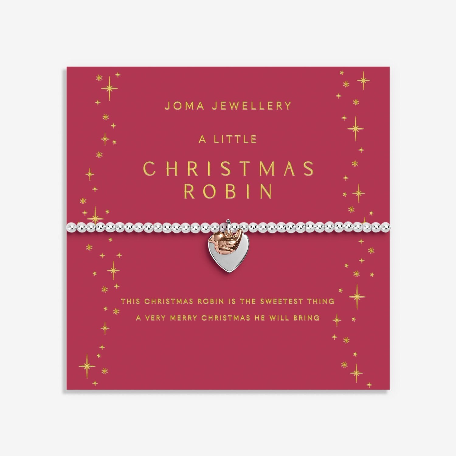 Celebrate the season of joy and togetherness with our Joma Jewellery Christmas A Little 'Christmas Robin' Bracelet. Made with lasting silver and rose gold plating, this bracelet features a pretty robin charm and classic beads. A perfect gift to capture magical moments and spread cheer.