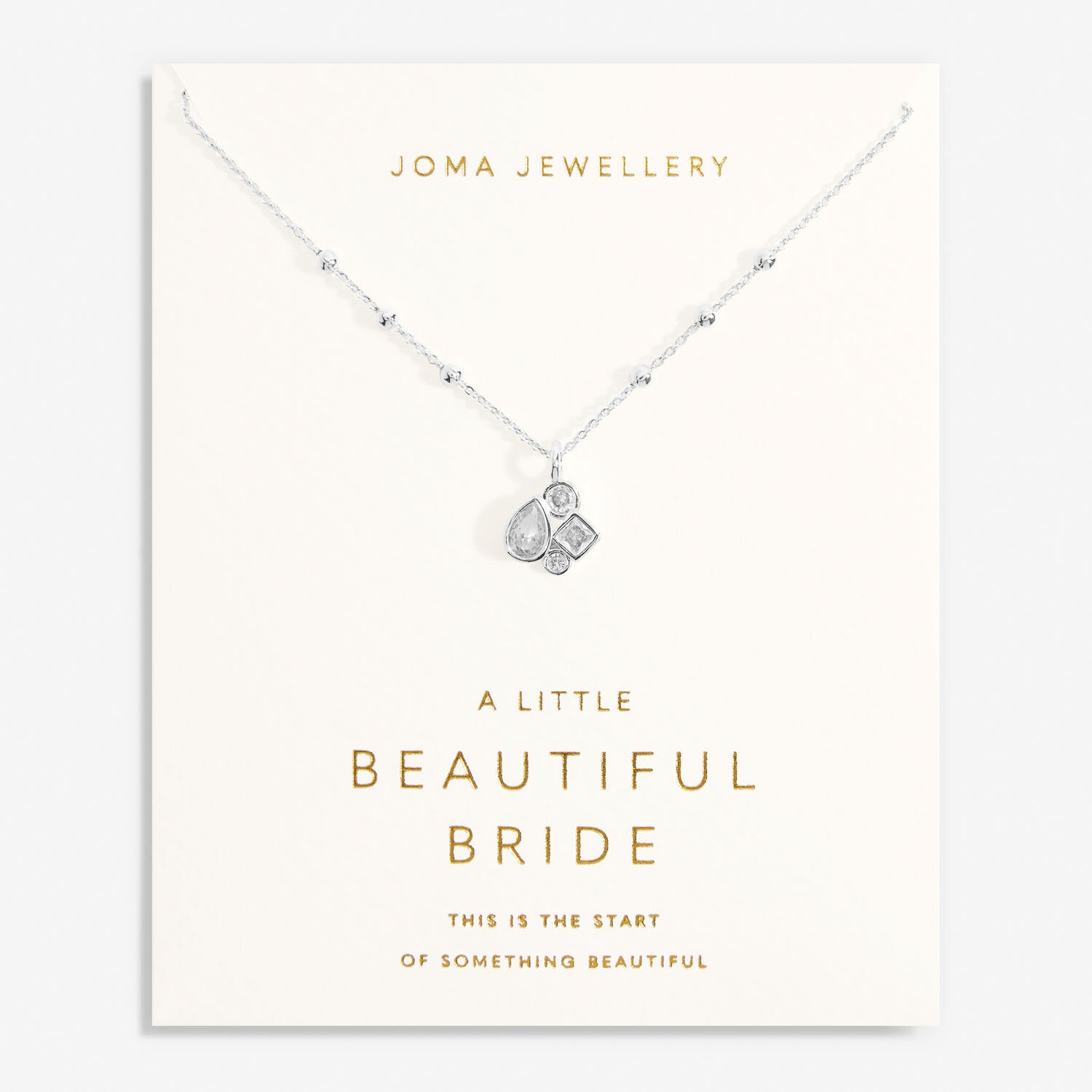 Get ready for that walk down the aisle with our Bridal A Little 'Beautiful Bride' Necklace! With a stunning gemstone cluster pendant and a luxe linen card to mark the occasion, this necklace is the perfect finishing touch for any bride or member of her tribe. Say "I do" to this beautiful piece in silver plating.