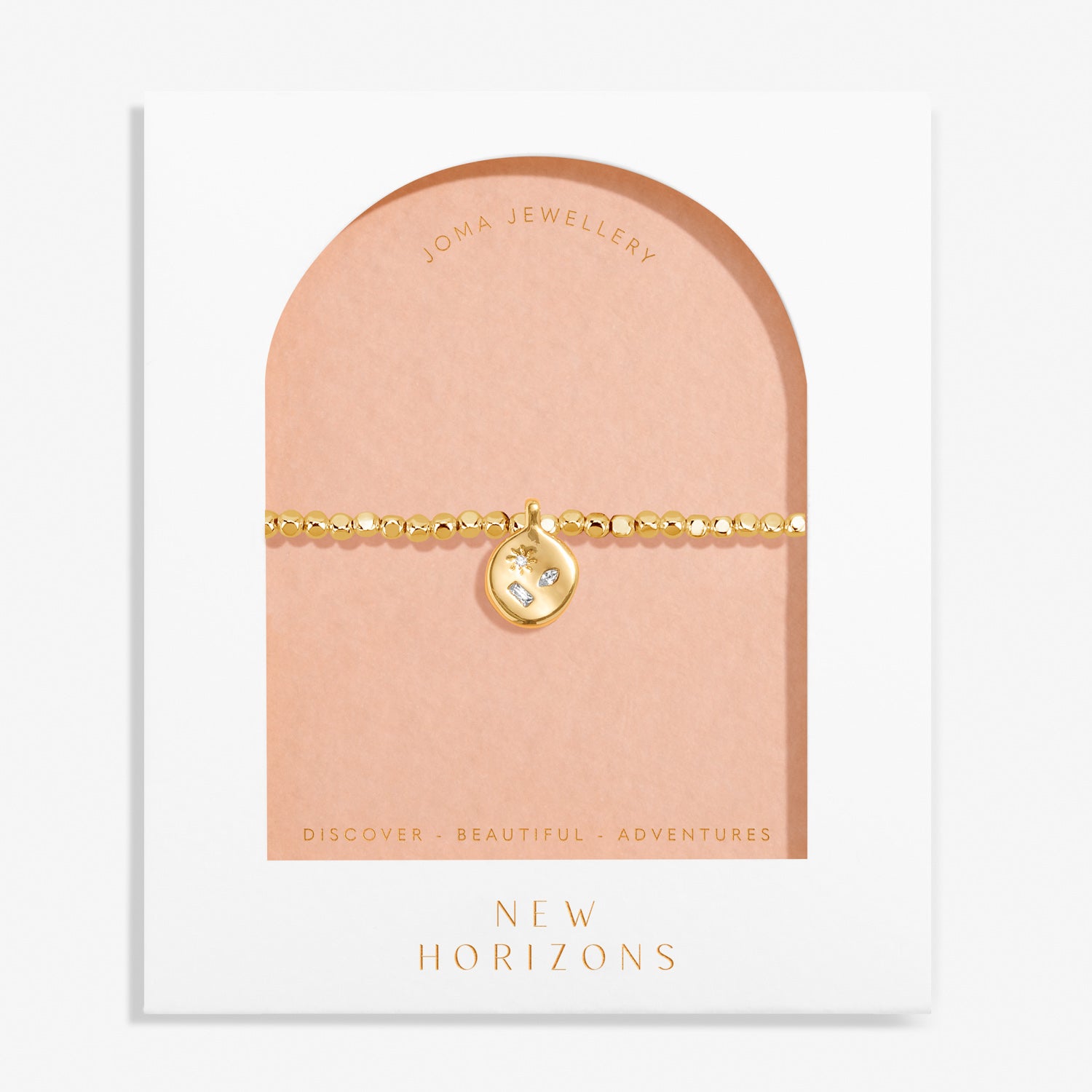 Get ready to dazzle with the Joma Jewellery New Horizons Bracelet from the Dolce Vita Collection! This bracelet features a stunning gold-plated design and comes ready to gift in a charming peekaboo arch pastel box. For an extra shine, pair with our Anklets Collection. New horizons await!