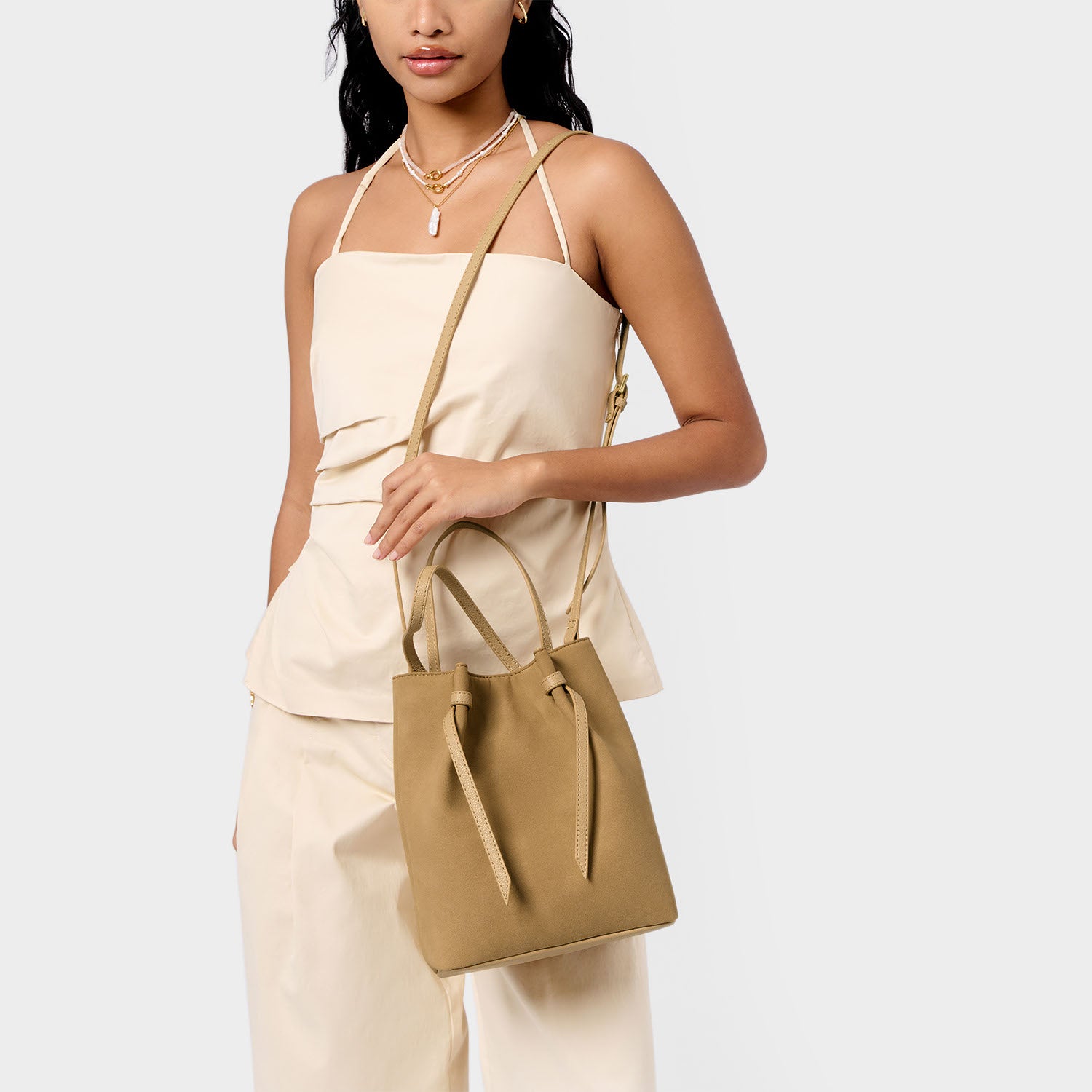 Katie Loxton Celina Suedette Bucket Bag in Camel
