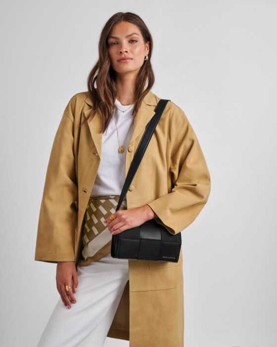 Introducing the Katie Loxton Taya Crossbody Bag – your new go-to for effortless style! Crafted from a luxe blend of smooth vegan leather and faux suede, this beauty feels as good as it looks. The eye-catching woven front flap adds texture and charm, while gleaming gold-tone hardware elevates the whole vibe. A hidden zip pocket on the back keeps your valuables safe and sound. Perfect for days when you want to travel light without sacrificing sophistication.