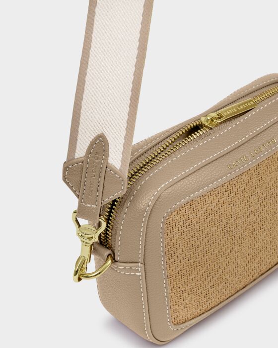 Katie Loxton Avery Raffia Small Crossbody Bag in Natural Raffia & Light Taupe