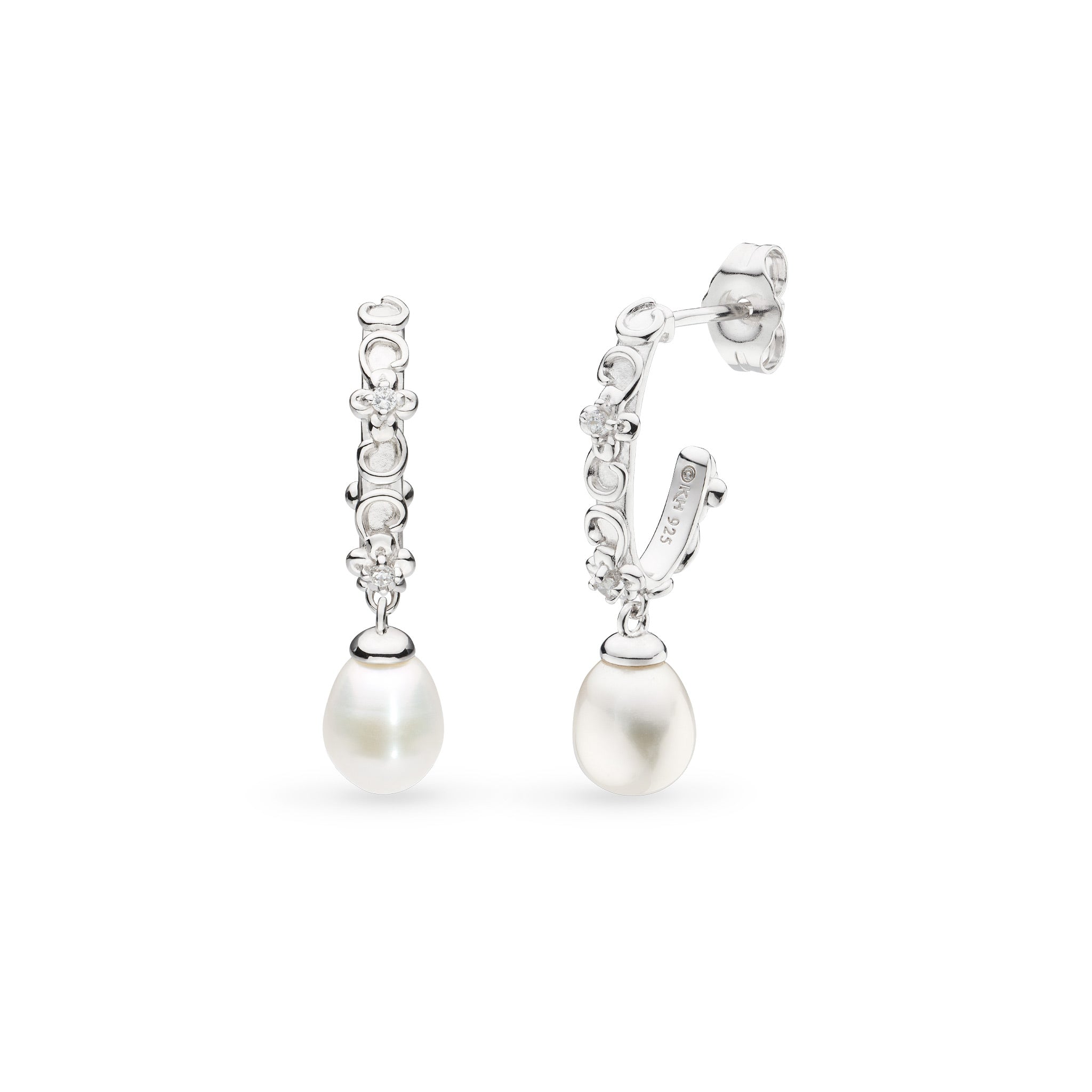 Add a touch of grace and romance to your style with these Kit Heath Blossom Flyte Honey Flower Pearl Oval Hoop Earrings. Made from premium Sterling Silver, they feature a Freshwater Pearl drop and intricate Honey Flower motifs, accented with sparkling Cubic Zirconia. Finished with Rhodium plating, they're a charming gift for any occasion.