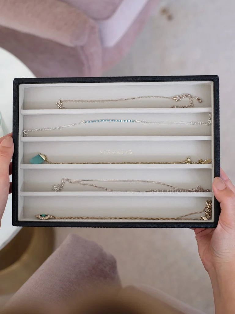 Stackers jewellery boxes are cleverly designed so you can create your own by choosing which layers and accessories best suit your jewellery collection. Alternatively the jewellery box layers make for perfect in-drawer jewellery storage if you like to keep your dressing table clear.