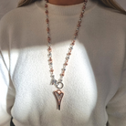 Miss Dee Sparkle Heart Knotted Long Necklace in Two Tone - Silver & Rose