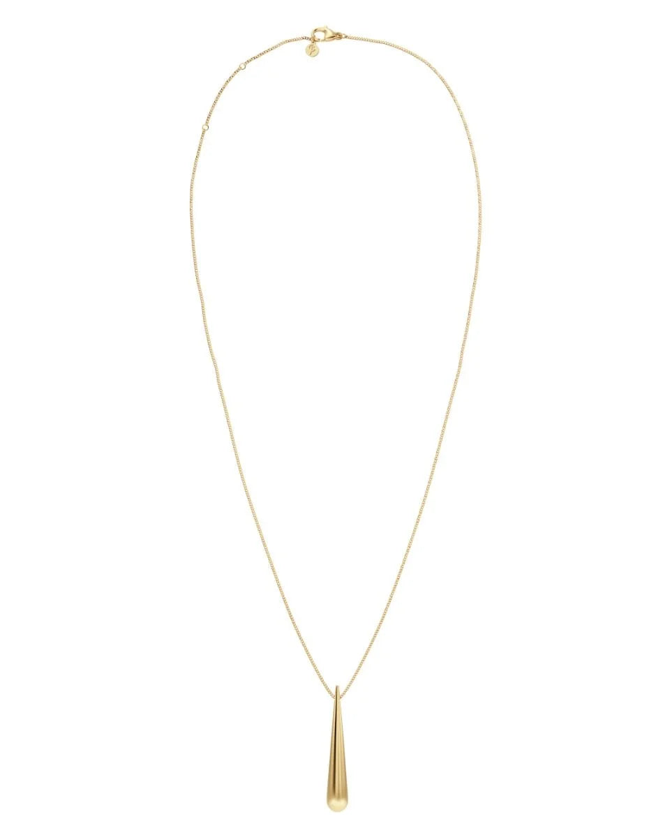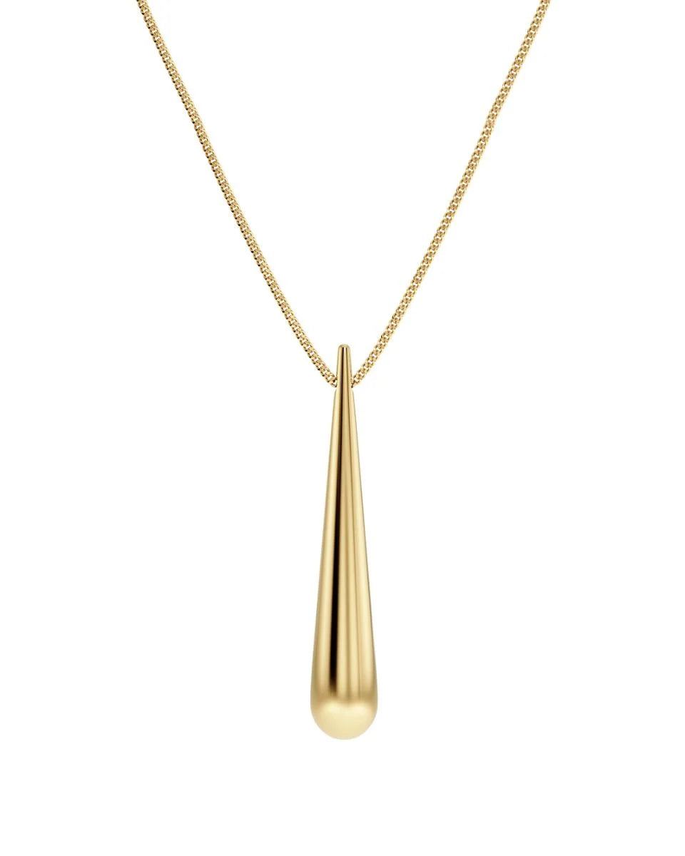 Introducing the Edblad Drops Necklace in Gold - a minimalist and timeless piece inspired by nature. This necklace features a stylised drop shape on a curb chain, perfect for parties or everyday wear. Pair it with the matching earrings for a coordinated look. Made with 14K gold plating.