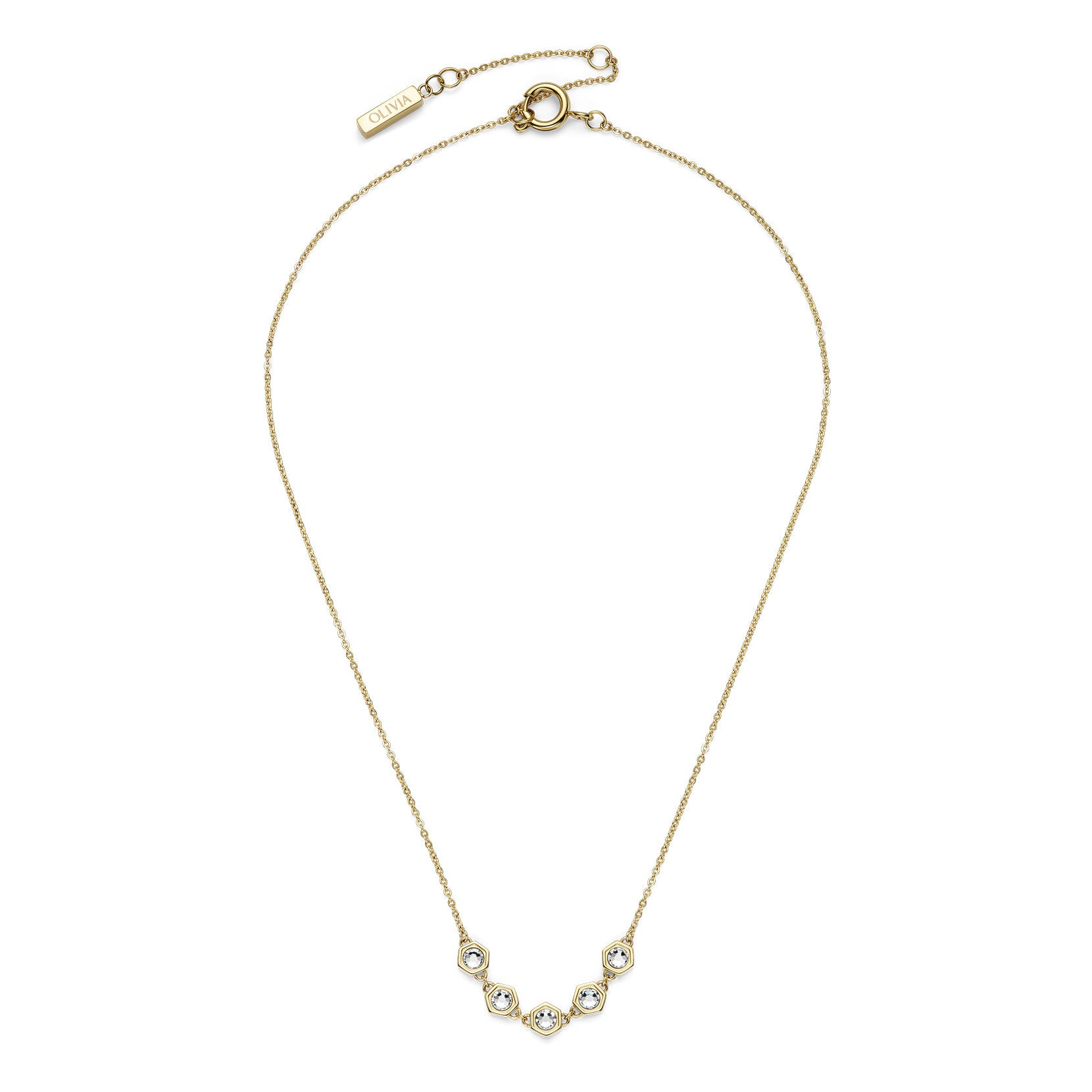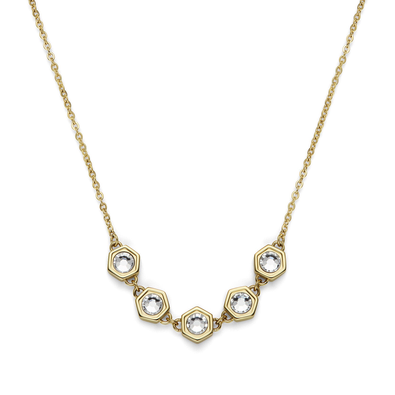 Add some buzz to your look with our Olivia Burton Ever Stacked Crystal Honeycomb Stacking Necklace. This delicate gold-plated necklace features hexagonal crystal charms inspired by the honeycomb, creating a sweet and stylish look. Use the generous extender to stack with other pieces for a mixed-metal look.