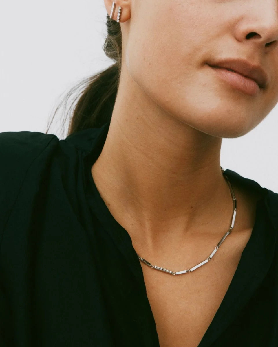 Unapologetically chic, the Edblad Twiggy Multi Necklace in Steel is a must-have for sophisticated tastes. Perfect for everyday wear or special occasions, this modern take on a collar necklace features architectural bars and sparkling stones that will surely turn heads. A confident and stylish addition to any wardrobe.