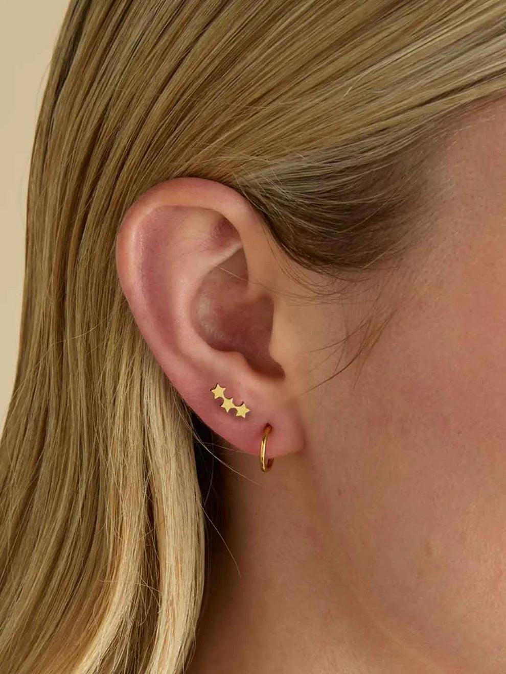 Introducing our most delicate creation yet—a bestseller that's stealing hearts everywhere. These enchanting starry studs are your new everyday essential, gliding effortlessly from casual coffee runs to night-out glamour. Layer them with bolder pieces for maximum impact, or let them shine solo. Crafted from 18k gold plated sterling silver with a petite 8mm stud and 7mm post, they're the perfect balance of dainty and dazzling. Your go-to sparkle for every moment.