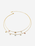 Elevate your jewellery collection with this stunning stainless steel necklace, featuring a sophisticated double chain structure adorned with delicate flower charms. Sparkling crystals and cubic zirconia appliqué catch the light beautifully, adding glamour to any outfit. The secure lobster fastening ensures durability and peace of mind.