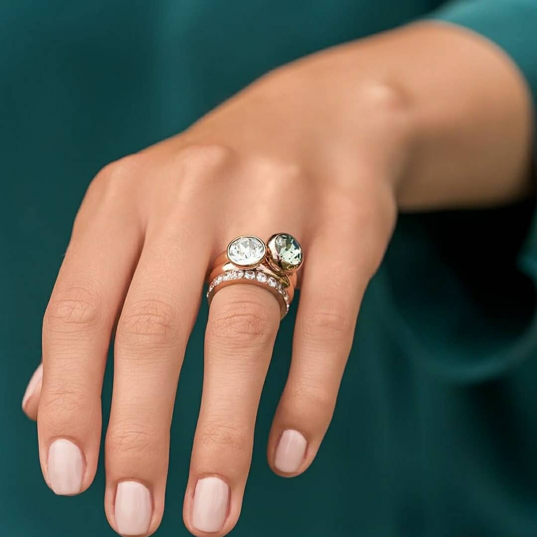 Beautiful stainless steel stone set Eternity silver spacer ring from Qudo. Add gorgeous glow to any out fit with this silver spacer ring. Wear next to your Qudo ring or in between two as a spacer. Includes branded packaging.