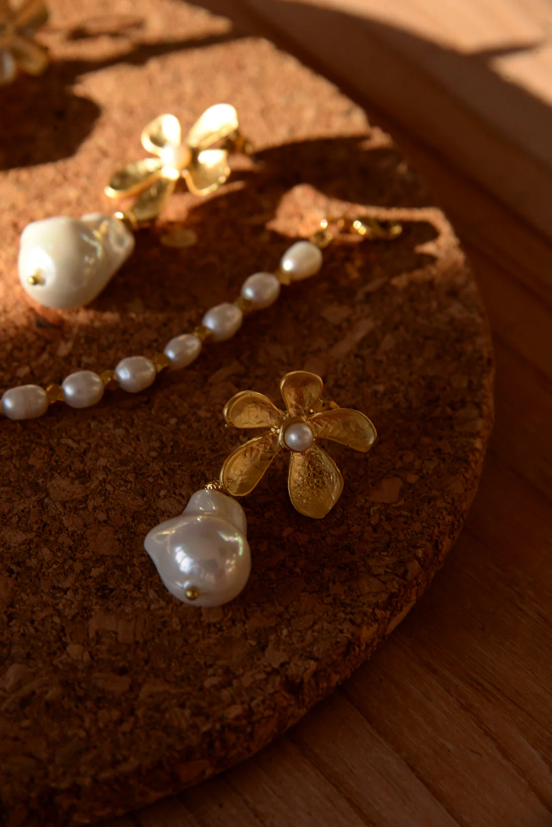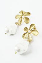 Add a playful touch to your outfit with My Doris Large Flower Pearl Drop Statement Earrings. These blooming gold earrings are hand-cast from 24ct gold-plated and feature a whimsical freshwater pearl drop that sways with your every move. Handmade by skilled artisans in Turkey, each pair is unique, with natural variations in the pearls. Approximately 50mm long, these earrings are sure to catch the eye and add a touch of fun to any look.